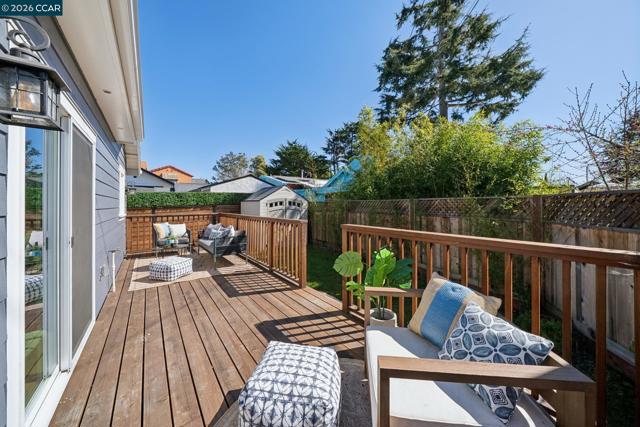 This stunning Berkeley bungalow in the heart of the city has been thoughtfully taken down to the studs and completely reimagined, blending a strong, well-built structure with beautifully curated modern designer upgrades throughout. Designed for modern comfort, the home features new insulation, updated plumbing and electrical systems, and brand-new central heating and air conditioning. A charming layout welcomes you with a dynamic roofline and soaring ceilings that create a bright, open, and inviting atmosphere. The thoughtfully designed floor plan offers two bedrooms and two bathrooms, along with two outdoor deck spaces and a sun-drenched backyard, ideal for embracing Berkeley’s indoor-outdoor lifestyle. At the heart of the home, the skylit kitchen serves as a true chef’s retreat, showcasing sleek two-tone European-style cabinetry with warm wood accents, a striking waterfall quartz island, and under-cabinet lighting that enhances both function and style. Ideally situated in a phenomenal central location near San Pablo Park, Berkeley Bowl, BART, and major highways, offering easy access to shopping, recreation, commuting, and everyday conveniences.