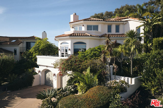 Positioned on one of the Mesa's most coveted streets, this exceptional residence offers breathtaking, unobstructed ocean, coastline & island views with no wires to interrupt the horizon. The dramatic living room is framed by floor-to-ceiling windows that capture the sweeping panoramic vistas; a fireplace & wet bar enhance the room's warm, with French doors opening to an expansive view deck. The expansive kitchen is both elegant & functional, featuring a large center island with seating & bar sink, rich granite countertops, a Sub-Zero refrigerator, stainless steel oven & microwave, a large pantry, & abundant custom cabinetry. The serene primary suite is a true retreat, showcasing stunning views, a private deck & two generous walk-in closets. The beautifully appointed primary bathroom has stone countertops, a deep soaking tub, & a luxurious walk-in shower, or relax in the hall bathroom's soothing steam shower. Completing the home is a welcoming family room with a cozy fireplace & French doors leading to a terraced backyard oasis. Designed for relaxation & entertaining, the backyard space features a built-in BBQ, refrigerator, fireplace, soothing spa, & lush, mature landscaping that provides both privacy & shade.