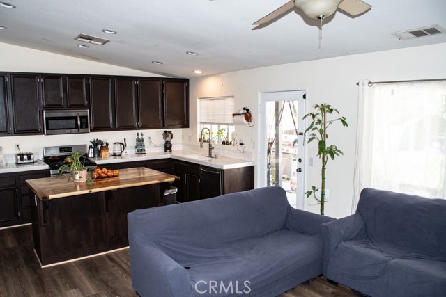 Don't wait! This single story beauty in a convenient San Jacinto neighborhood offers an efficient layout with no wasted space, including a dining room/formal living room which opens to the family room/kitchen, an office/den and 3 spacious bedrooms, including a primary bedroom with en suite and a walk in closet. Upon entering, you're greeted with ample natural light (for those plant enthusiasts), vaulted ceilings, and a design that is conducive to entertaining. Tasteful laminate flooring runs seamlessly through the living areas, while a hand crafted wood countertop on the kitchen island will be the center of conversation both literally and figuratively. For those who work at home, the office space (currently used as a bedroom) is positioned at the front of the home, making working while maintaining home responsibilities easier. Meanwhile, the spacious backyard boasts a patio that runs the length of the home, with the added convenience of a retractable patio cover. Generous side yards allow for a garden, working/storage space, and the run of your imagination, while a shed and chicken coop lend to your homesteading dreams. This home holds the possibility of extended family/friend filled gatherings, a first home that becomes the forever home, and so much more! Don't hesitate to make it yours!