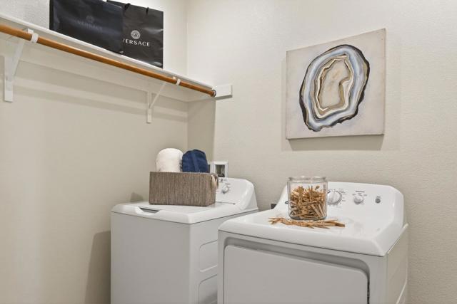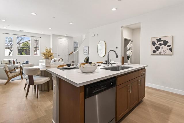 Gorgeous end unit townhome with spectacular new designer quartz kitchen counters and backsplash. Gas cooktop! Brand new LVP floors throughout the first floor and upstairs hallway. A generous master bedroom with ensuite and huge walk-in closet. Washer and Dryer Included, Dual zone heating and cooling, on each floor. Oversize 2-car parking garage with extra shelving. And enjoy the front patio for BBQ and warm dining. Beautiful and spacious townhome, located minutes from the heart of downtown Morgan Hill! Easy walk to restaurants, parks, farmers market, shopping, Caltrain, Apple & Google bus. Walking distance to Starbucks, Trader Joe's and Safeway. The community has a playground, picnic benches as well as a resident agricultural area. If you're feeling active, Coyote Creek Trail is just minutes away!