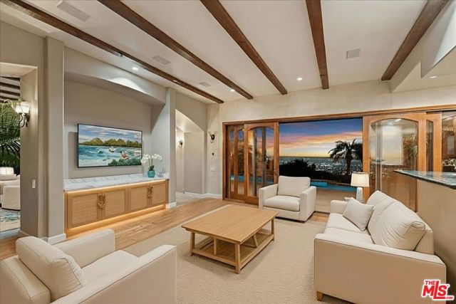 Situated in the prestigious Trousdale Estates, this one-of-a-kind Mediterranean architectural gem captures the sophistication and serenity that define Beverly Hills hillside living. Privately set on coveted Carla Ridge, this custom-remodeled single-story residence offers four bedrooms and five baths, thoughtfully designed to highlight its sweeping panoramic city views and exceptional privacy. The home welcomes with warm Mediterranean character, generous ceiling heights, and an inviting floor plan that blends elegant living spaces with updated finishes throughout. Large picture windows frame stunning city vistas and fill the interiors with natural light, enhancing both everyday living and effortless entertaining. The remodeled kitchen and common areas provide comfortable flow, while the bedroom suites are well-appointed for relaxation and privacy. Outside, the property delivers the true Trousdale experience serene views, mature landscaping, and multiple areas for lounging and dining, all set against the dramatic backdrop of the city skyline. An opportunity to lease a distinct, custom-crafted Mediterranean home in one of Beverly Hills' most coveted enclaves. Available for Sale too!