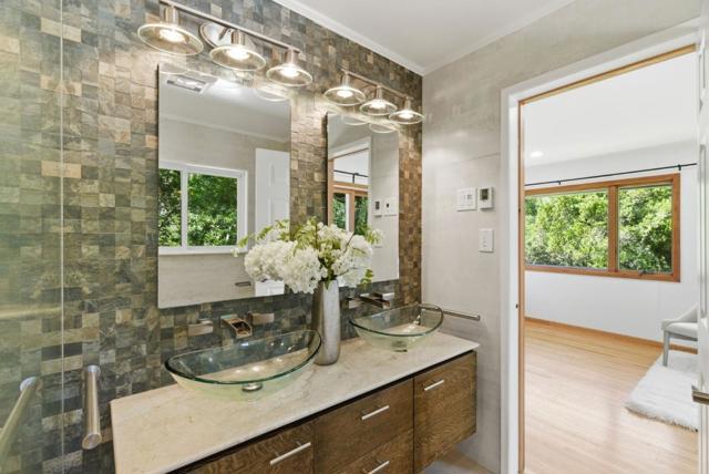 Serene Los Gatos Mountains Retreat with Top Rated Schools. Tucked among majestic oaks just 12 minutes from Downtown Los Gatos, this beautifully updated single-story home offers the perfect blend of nature and convenience. Set on a sunny, usable 2 acre lot with stunning nature views, this property includes a chicken coup, workshop and large storage shed. The sun-lit living room looks out to the spacious front deck. Massive open-concept kitchen with large center island, tons of counter and cabinet space, wine fridge, breakfast bar seating and separate dining area. Family room or office area with adjacent indoor laundry room. Spacious bedrooms including the primary suite with peaceful views, walk-in closet and remodeled bath with heated tile floor, dual vanity and large step-in shower. Remodeled hall bath with separate stall shower and soaking tub. Two bedrooms open to the tranquil back deck. This property includes its own well with a water purification system. Large circular driveway offers ample parking and gorgeous views of the Santa Cruz mountains over the property's iconic sandstone rocks. If you are looking for a beautiful natural setting with ample space and still maintain a neighborhood feel close to town, this is the perfect home for you!