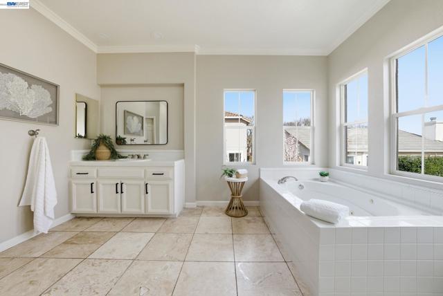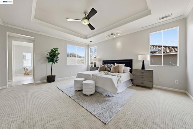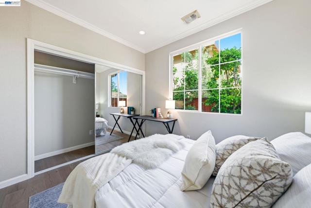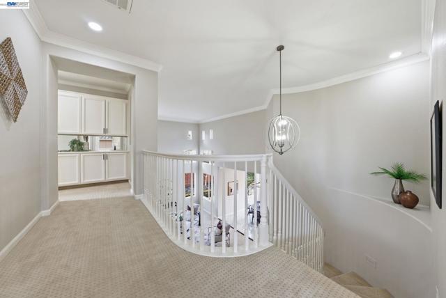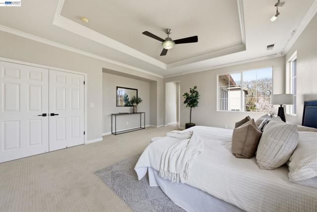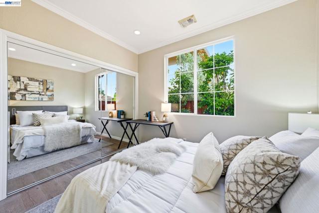 Westside San Ramon Court Location in Desirable Four Oaks. Beautiful 5-bedroom home + office/retreat, 4 full baths, and 3,362 sq ft with a 3-car garage, built in 1998. Over $150,000 in recent upgrades including fresh interior paint, upgraded lighting, and hardwood flooring across most of the lower level. The updated gourmet kitchen features stainless steel appliances, designer finishes, & abundant cabinetry. Step inside to soaring vaulted ceilings & abundant natural light creating a bright and inviting atmosphere. A convenient downstairs bedroom has an oversized closet, adjacent full bath w/shower is ideal for guests or multi-generational living. Upstairs offers 4 additional oversized bedrooms and three full bathrooms. The expansive primary suite includes a private bonus retreat perfect for a home office, gym, or relaxing lounge. Enjoy a cozy backyard w/ variety of mature fruit trees including persimmon, mandarin, apple, plum, nectarine, pomegranate, & lemon. Additional features include fully paid solar and a 240V NEMA EV charger compatible with Tesla and other electric vehicles. Generous sized laundry room with large sink with plenty of cabinets. Four Oaks Neighborhood has No HOA, located on a cul de sac, near top-rated SRV schools, City Center shopping and dining, & easy access to Interstate 680, Interstate 580 & Bart. Open House Sat & Sun 2pm to 5pm.