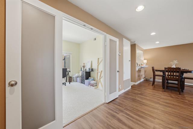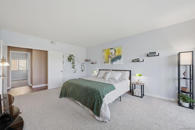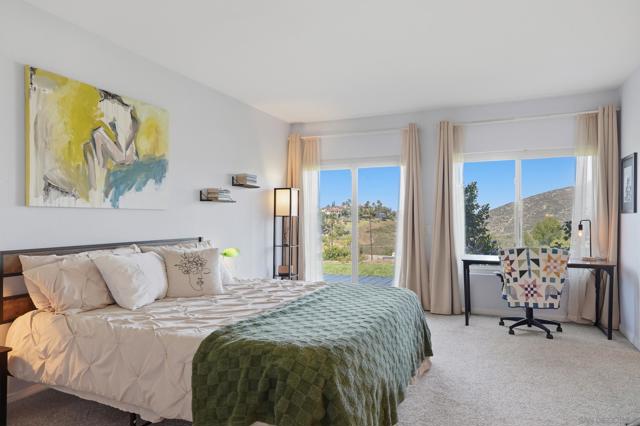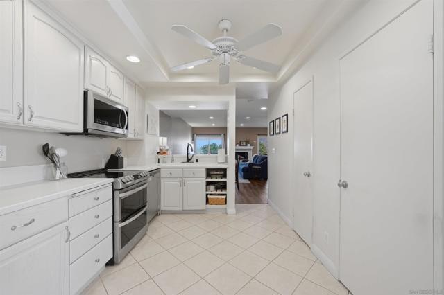 Welcome to Stoneridge Châteaus! This downstairs, 1,624 sq. ft. move-in ready home offers 2 beds/2 baths with a versatile bonus room that can serve as a den, office, 3rd bedroom or playroom! You’ll enjoy the unobstructed panoramic views of the mountains and green belt from your great room, master suite and large private patio! And the home features high ceilings to give a nice open feel. Recently remodeled bathrooms, newer tile, vinyl planking and carpet, and kitchen with hard surface counter tops, abundant cabinetry, and stainless-steel appliances. And you’ll enjoy central HVAC that keeps the home comfortable year-round. The floor plan features a large open-concept living room, dining area, inside full-size laundry closet (washer/dryer included). The master bedroom is large and has a recently upgraded walk-in closet! And your 1.5 car garage has lots of storage cabinets, and nearby guest parking. The HOA covers water, sewer, trash, exterior maintenance and it recently replaced the roof in 2024. Pets are allowed and amenities include two clubhouses with TWO YEAR-AROUND HEATED pools and hot tubs, 1 mile of private common area green belt space and adjacent to The Farm development with easy access to 3.5 miles of public walking trails! Minutes to Lake Poway, Valle Verde Park, nearby golf, dining, shopping and convenient freeway access. And for family’s with kids, you’ll appreciate the home is located in the award-winning Poway Unified School District. Note that this is NOT a 55+ community and easy to show. VA & FHA loans are approved!