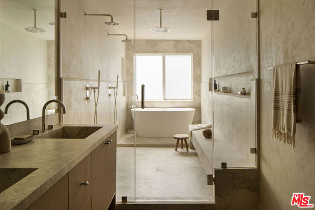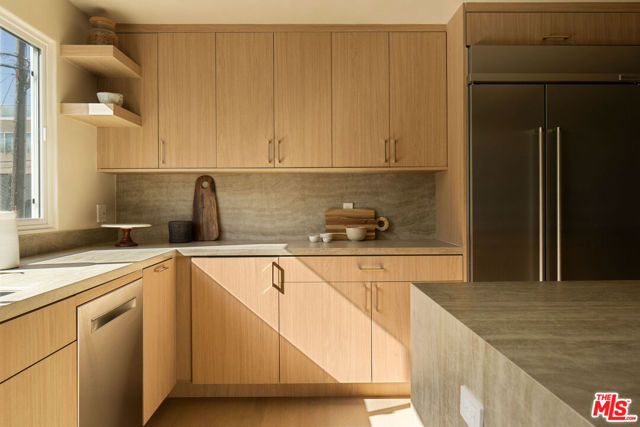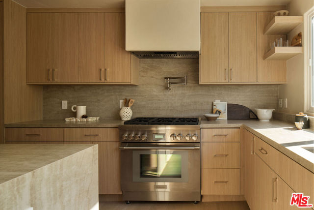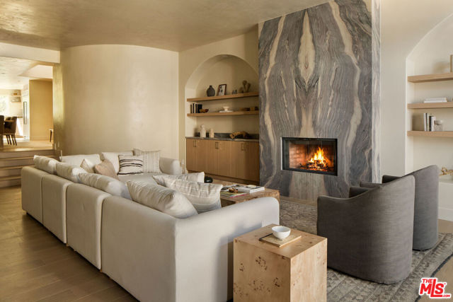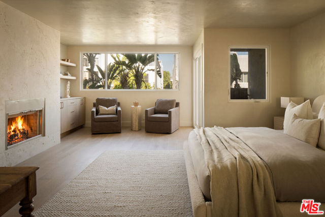 Located in the coveted Silver Strand pocket of Marina Del Rey, just steps from the sand sits this fully gutted and exquisitely remodeled townhouse showcasing exceptional craftsmanship and curated designer finishes throughout. The light-filled living room is anchored by a striking book-matched Antolini Blue Fusion stone fireplace with custom floating shelving and cabinetry, while the chef's kitchen features Taj Mahal stone surfaces, a pot filler, integrated island mini fridge and custom designer chandeliers. Walls throughout are hand-finished in Roman Clay with spa-inspired bathrooms elevated by micro-cement and premium stone selections. The powder room highlights a hand-chiseled travertine sink with bespoke accents, while the junior suite and third bath feature refined stonework and custom oak vanities. The primary suite offers a serene retreat with a custom Travertino Bianco fireplace, his-and-hers oak closets, and a luxurious Beige Creppo stone bath complete with dual vanities, rainfall shower and soaking tub. Additional bedrooms include custom fireplaces, built-ins and walk-in storage. The home is outfitted with brand-new Milgard windows, custom oak doors, reeded glass accents, polished nickel Phylrich fixtures, a fully integrated smart home system and a rare four-car garage with epoxy flooring. An exceptional coastal residence blending sophisticated design, modern technology and an unbeatable location just moments from the beach.