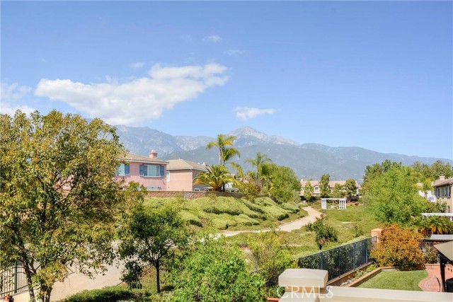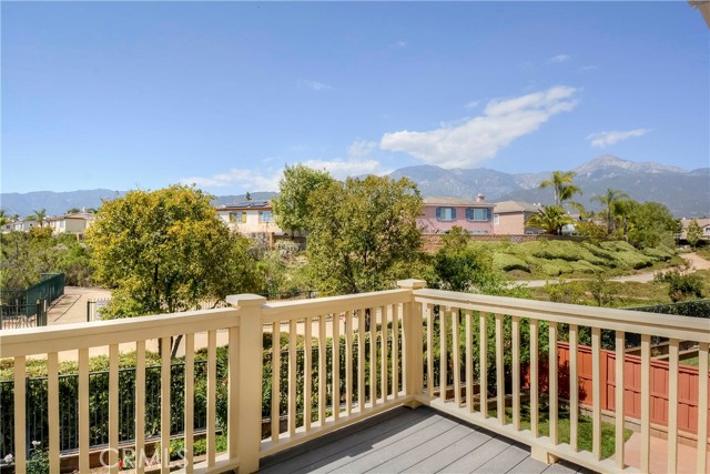 Located in the highly desirable The Colonies community in Upland, this beautifully maintained home offers exceptional comfort, space, and stunning mountain views.Built in 2005, this spacious residence features 5 bedrooms, 4 bathrooms, and approximately 2,646 sq.ft. of living space. The versatile floor plan includes a downstairs bedroom and full bathroom with a shower, as well as an additional den/office—perfect for guests or working from home. The expansive kitchen is designed for both functionality and style, featuring a center island, abundant cabinetry, granite countertops, a double oven, and a walk-in pantry. It opens seamlessly to the inviting family room, creating a bright open-concept layout complete with a cozy fireplace.Interior features include laminate wood flooring throughout the main living areas, tile flooring in the kitchen, entry, and dining area, and wood blinds throughout the home. The staircase showcases an elegant combination of wood and iron detailing.Upstairs, the spacious primary suite offers a private balcony with breathtaking mountain views. The luxurious primary bathroom includes an oversized soaking tub, separate shower, and a large built-in walk-in closet. A secondary upstairs bedroom on the north side also enjoys beautiful mountain views. Additional highlights include an upstairs laundry room for convenience, ceiling fans in all upstairs bedrooms, a hallway built-in desk, and carpet flooring throughout the upper level. Step outside through the kitchen’s sliding doors to a ?????ously landscaped backyard featuring a covered patio and a variety of fruit trees—perfect for relaxing or entertaining. Ideally located near shopping centers, banks, restaurants, and with easy access to major freeways, this home offers both comfort and convenience in one of Upland’s most sought-after communities.