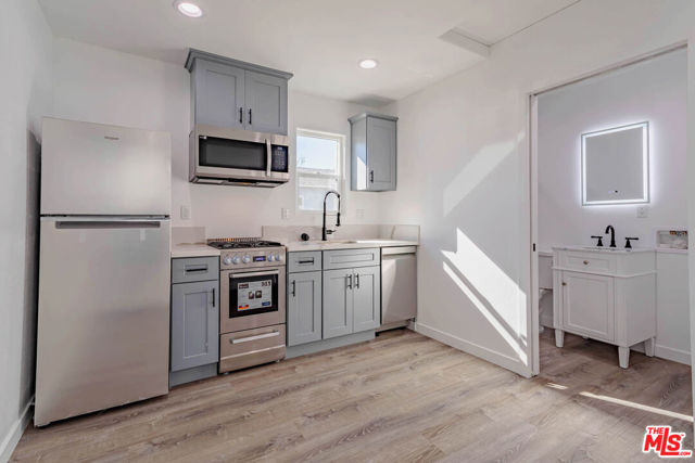 Stylish one bedroom compact ADU in a garden setting now available now in the best part of Northwest Glendale. This is the new construction you have been looking for! Like your own house, this bungalow has new everything: grey hardwood style floors throughout, recessed lighting, fresh paint, new double pane windows and custom blinds. Set in rear of property, this freshly landscaped property features entry through arge fenced patio, new mini split with remote control. Kitchen is a dream with new quartz countertops, fresh modern grey cabinetry with soft close drawers, stainless steel appliances including microwave, dishwasher, stove and refrigerator. Best feature is Large enclosed Patio, great for lounging, BBQing and entertaining. Home also features new Washer and Dryer. Bedroom has modern ceiling fan and mirrored closet doors. Gorgeous bath has new vanity, fixtures and shower with designer tile. Fabulous location with a walk score of 100 near Paradise Bakery, coffee shops, Trader Joes, Ikea and all the wonderful amenities Burbank and Glendale has to offer! Plentiful street parking (only). Pets ok. Available now! Please note this apt is small - great for one person. ** Ask about our move in special **