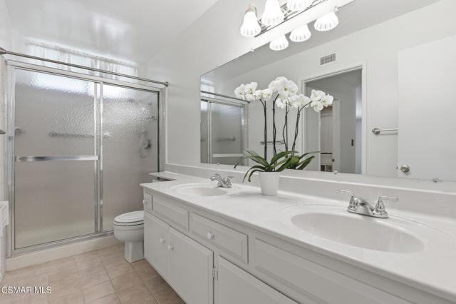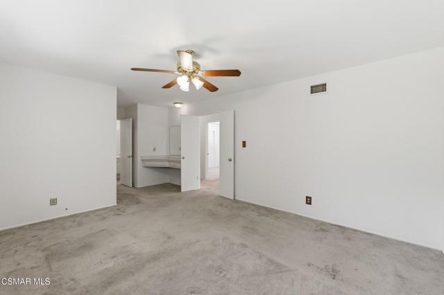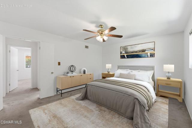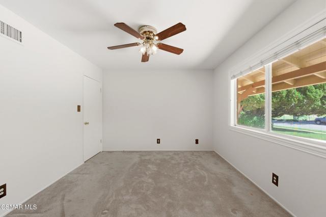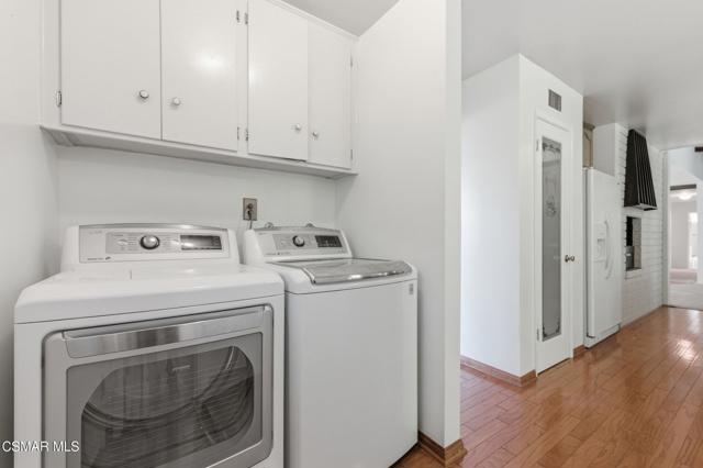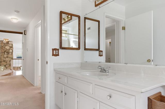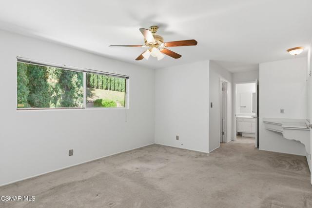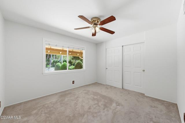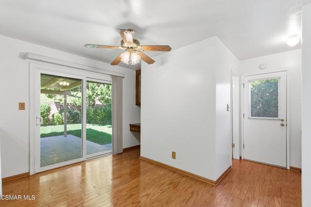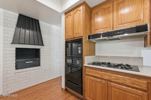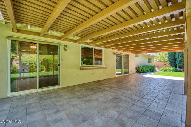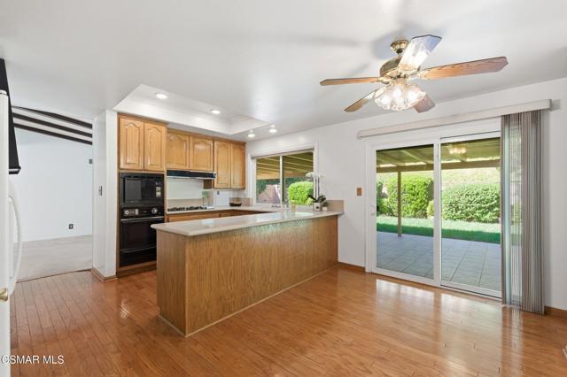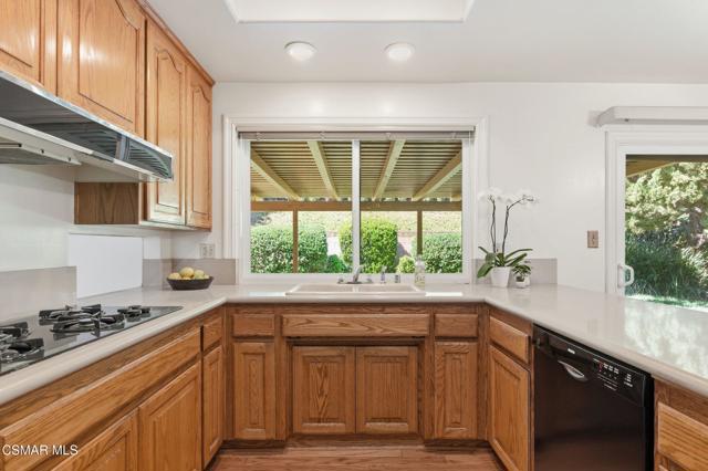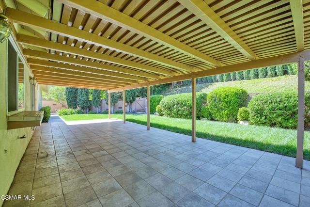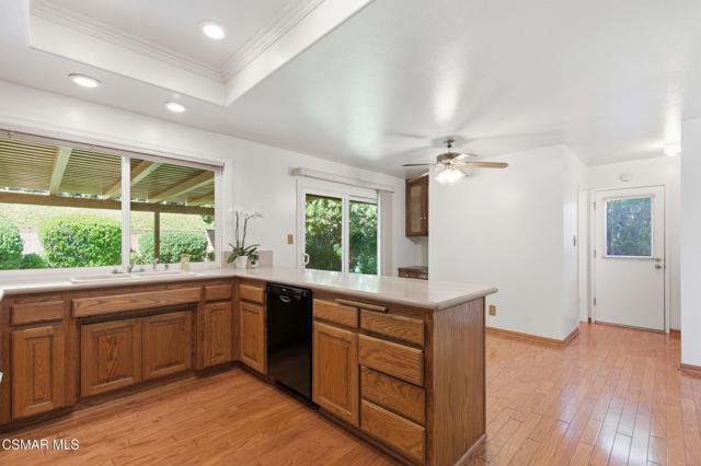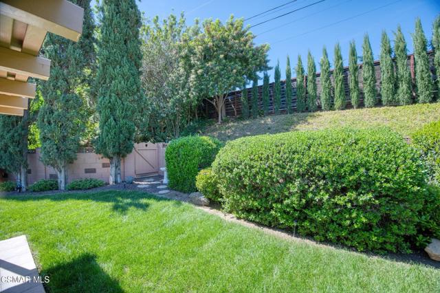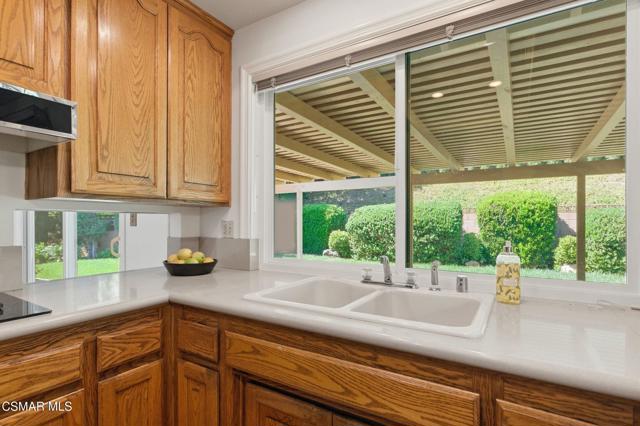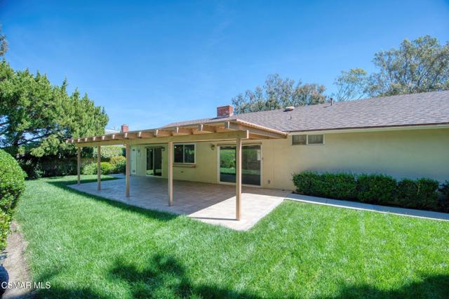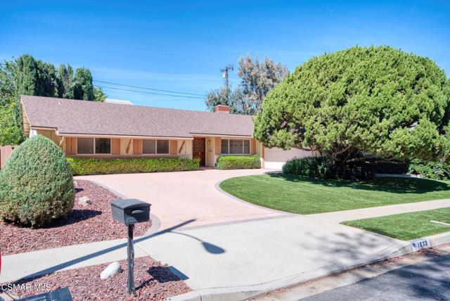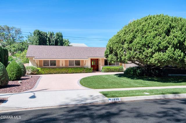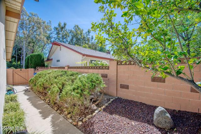 Meticulously maintained & freshly painted throughout, this single-story 3 bedroom, 2.5 bath Thousand Oaks home offers an exceptional opportunity! Spanning nearly 2,000 square feet on a serene & private 10,454 square foot lot, it is ideally situated within one of the area's most sought-after neighborhoods. Newer paver-stone hardscape driveway & drought-tolerant landscaping create an elegant curb appeal with minimal maintenance. 2 car garage with side yard access offers extra storage options and garage fridge. Inside, freshly painted neutral interiors are complimented by rich wood flooring & an abundance of natural light. Custom sidelight entry doors open to a spacious living room highlighted by a dramatic floor-to-ceiling stone fireplace, seamlessly flowing into the dining area with chandelier. An adjacent family room/den/study enhances the open feel with newer sliding doors that invite the outside in & provide direct access to the lush backyard & fully covered patio. The kitchen features updated countertops, a breakfast bar, dual-pane windows & sliders, a built-in desk area, space for casual dining & a unique indoor barbecue--perfect for effortless everyday living & entertaining. Great floorplan includes 3 light-filled bedrooms, each with ceiling fans. The Primary suite has a dressing table, walk-in closet, ceiling fan & views of the rear yard & hillside with Italian cypress trees at the rear of the property. The serene backyard is enclosed by block walls with gates for added privacy. The covered patio is ideal for year-round enjoyment & yard has lemon trees, flowering plants, hillside ground cover, Italian cypress trees & a stunning juniper tree in the front yard. Additional upgrades include a newer roof, updated HVAC system, convenient indoor laundry, 2 full baths plus a powder room ideally positioned for guests. With a prime location near shopping, dining, healthcare, scenic hiking trails, botanical gardens, & top-rated schools, this home offers the perfect blend of comfort, style, & convenience with no HOA in the heart of Thousand Oaks.