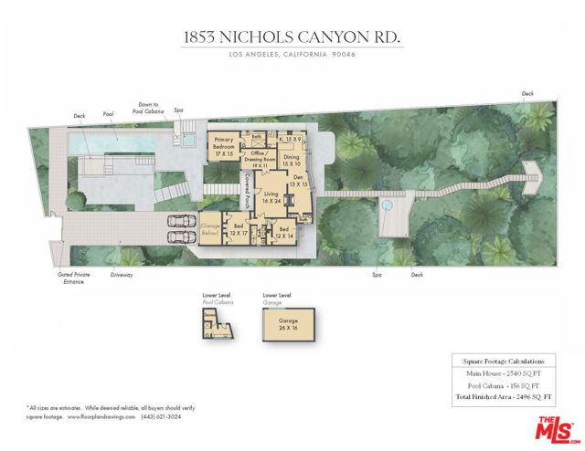 Set in the lush foothills of lower Nichols Canyon, this gated estate is located over a bridge amidst extensive gardens, pool, spa, cabana and another hilltop hot-tub with views. Once parked in the brick motor court, the beautiful architecture and privacy of the setting become evident....yet the location is just moments from the Sunset Strip, West Hollywood and Beverly Hills. Inside, the interiors feature dramatic cross-trussed beams, two large wood-burning fireplaces and walls of glass that retract to reveal dramatic hillside gardens. The chef's kitchen, dining room and den are all open to each other and flow out the patios through those large open doors. The spacious master suite has soaring wood beam ceilings, separate dressing area/office and a spa-like bath. The two guest rooms at the other side of the house share a large bath with jacuzzi tub and separate shower. The property has the feeling of a spa retreat within the city. There are many sitting areas tucked within the gardens and pathways up to multiple viewing decks with city views. The pool cabana is located adjacent to the spa and fire-pit and offers a large sauna, bath and shower. There is so much to offer in this truly special setting.