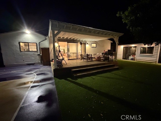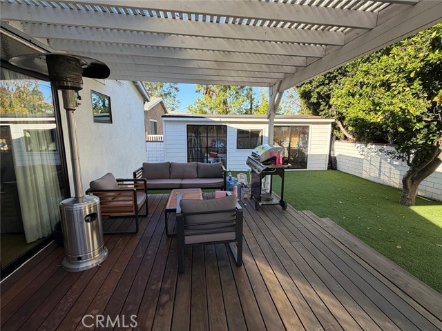 Welcome to this beautiful, private gate residence, nestled on a charming street in Tarzana. This stunning 3-bedroom, 2-bathroom home is a true gem. As you approach, you will be greeted by beautifully maintained landscaping that sets the tone for the elegance within. Step inside to experience open-concept living at its finest. The modern kitchen features an island and sleek stainless steel appliances, seamlessly flowing into the inviting living and dining areas. Large, updated windows with natural light, creating a warm and vibrant atmosphere. The home boasts three bedrooms, including a lovely primary suite. The suite features a generous bedroom size, a beautifully updated bathroom, and a walk-in closet. An amazing patio off living room facing the Yard with perfect setting for entertaining friends or enjoying a tranquil evening under the stars. With a generously sized yard ,Mini Basketball court. A great Storage unit in the Back yard. Walking to Ventura Blvd and Trader Joe's and other Shopping. Don't miss the opportunity to make this lovely Tarzana residence your own.