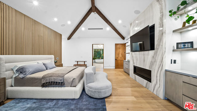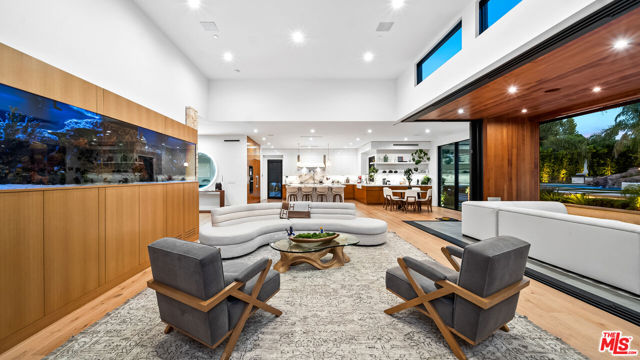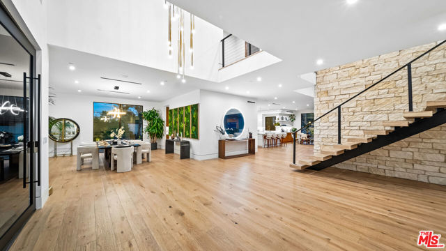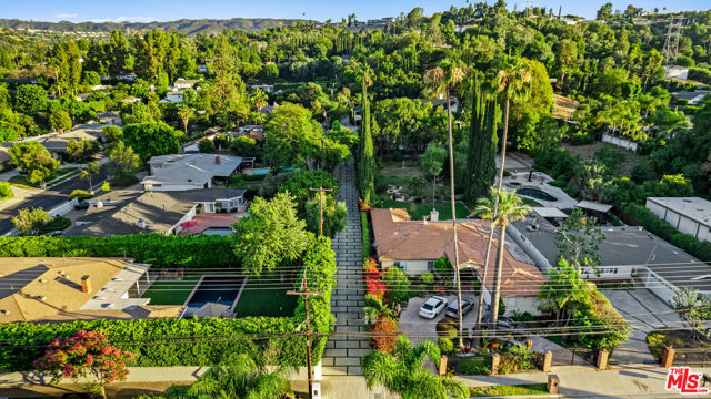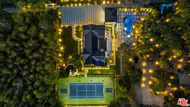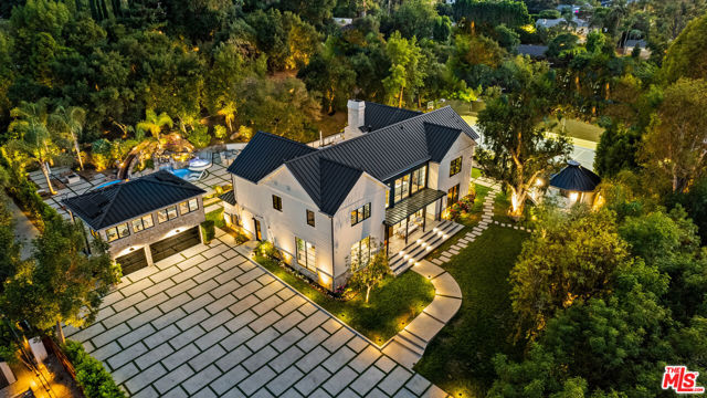 Experience exceptional living in this newly constructed modern farmhouse, located on a sprawling 1.6-acre flag lot in Tarzana. This extraordinary estate, designed for grand living and entertaining, is accessed through two private gates and a 400-foot driveway, leading you to a home that combines elegant design with practical features. The home epitomizes refined living and timeless luxury, offering 5 spacious bedrooms and abundant room for comfort and convenience. The expansive open-concept layout is perfect for both relaxation and entertaining, with seamless transitions between indoor and outdoor spaces. The custom chef's kitchen boasts state-of-the-art Miele appliances, a built-in coffee maker, wine cellar, butler's pantry, large pantry, and a massive center island with bar seating. The kitchen opens up to the large family room featuring a fireplace, aquarium, custom shelving and views of the meticulously landscaped grounds, creating a welcoming atmosphere for everyday meals and grand gatherings. A formal dining room, living room, lounge area, and an additional eating area complete the downstairs.The second level offers an additional family room, oversized ensuite bedrooms, and a laundry room. The luxurious primary retreat features beamed ceilings, a fireplace, custom shelves, an expansive balcony that overlooks the backyard, dual large closets with custom cabinetry, dual vanities, a soaking tub. and a large steam shower. The estate is designed with entertainment in mind, featuring a full-size tennis and basketball court, a resort-style pool with a water slide, waterfalls, a baja shelf, and a grotto. There's also a versatile pavilion with a bath and wet bar for hosting events, and a covered tennis pavilion. Enjoy cinematic experiences in the state-of-the-art home theater, or unwind in the private gym with direct access to the tennis and basketball court.Additional features include a main floor ensuite bedroom, a detached guest house for visitors or extended family, a three-car garage, a smart home and security system, and ample parking for multiple cars.