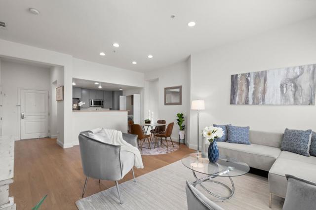 STYLISHLY UPDATED GROUND-LEVEL CONDO | Featuring private bedrooms that flank the gathering area, this sought-after unit in the Mission Terrace community also boasts 10-foot ceilings and light-filled spaces creating an airy retreat abounding with versatility and convenience. Upgrades include newly installed floors, new paint, plantation shutters, Nestî climate control, a Ringî video doorbell, and refinished cabinetry. The updated kitchen showcases stainless appliances and granite countertops, while the covered patio is concealed by greenery for privacy. Both bedrooms are spacious with walk-in closets, and the primary suite offers dual vanities and custom storage. Includes central AC, an in-unit laundry, and quick access to two side-by-side reserved garage spots. Community amenities include a pool and spa, playground, gym, and more. Within just ONE MILE are parks, Don Callejon School (K-8), Safeway, Rivermark Plaza, and campuses for Oracle, Intel, and MORE!