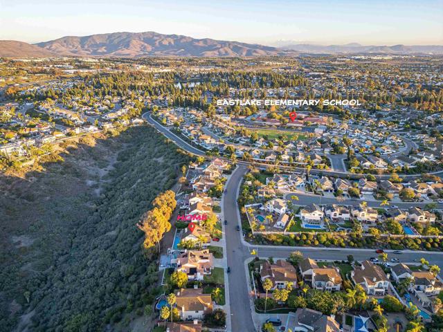 BREATHTAKING MOUNTAIN & LAKE VIEWS! This rare 0.43-acre Eastlake Vineyards home delivers true resort-style living with low HOA and NO Mello Roos. Enjoy panoramic views from your private backyard featuring a heated pool, jacuzzi, and expansive outdoor space perfect for entertaining. Inside, the home features soaring ceilings, an open floor plan, and abundant natural light. Separate living and family rooms, a large dining room, a wet bar, and an entertainer’s kitchen make hosting effortless. In its own private wing, the spacious ground-floor primary bedroom offers a fireplace, beautiful views, plantation shutters, and direct access to the pool. The oversized 4th bedroom can easily be used as a second primary suite, game room, or media room. A 3-car garage provides plenty of parking and storage. Located close to top-rated schools, local parks, shopping centers, and major freeways, this home offers convenience on top of exceptional privacy and views. With one of the largest lots in the neighborhood, this property is truly a standout in Eastlake.