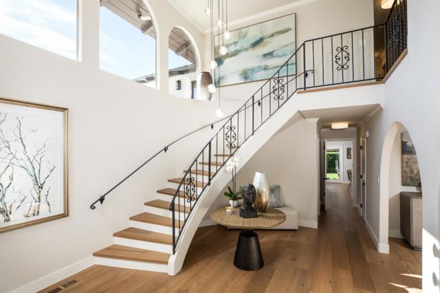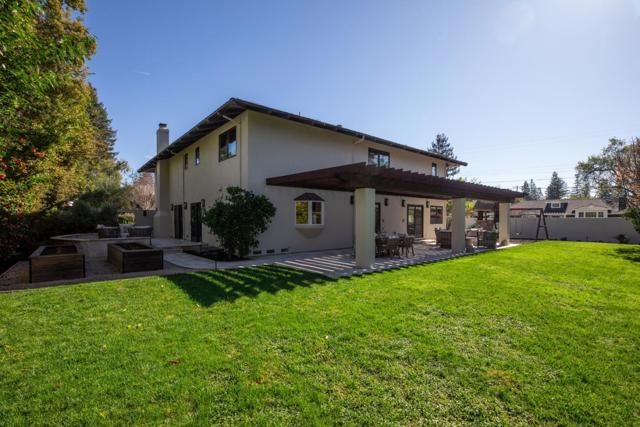 Gracefully set on a peaceful cul-de-sac, this magnificent Mediterranean-inspired residence blends timeless architecture with modern luxury in a coveted Menlo Park neighborhood. A dramatic foyer welcomes you with soaring ceilings, a sweeping curved staircase, arched windows, and a dazzling chandelier. Elegant living and dining rooms feature crown molding, arched openings, and doors opening to inviting patios. The stunning chefs kitchen boasts stainless steel appliances including a Thermador 6-burner cooktop & refrigerator, bay window, and a spacious island, flowing into an expansive family room with backyard access and a stylish bar. A versatile flex room with built-ins offers space for a study, office, or casual dining. The luxurious primary suite features French doors to a Juliette balcony and private terrace, plus a spa-inspired bath with soaking tub, large shower, heated floors, skylight, and walk-in closet. Beautifully landscaped grounds offer lush lawn, travertine patios, pergola with heaters, citrus and fig trees, and a play area. Additional highlights include a 3-car garage with Tesla charger, A/C, dual-zone heating, Sonos speakers, tankless water heater, and new hardwood floors. Ideally located near Sand Hill Road, Stanford, dining, Hwy 280 and outstanding schools!