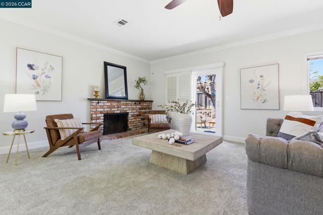 Single-story home tucked on a court near the Walnut Creek border with a remodeled kitchen, completely remodeled primary bath & an open great-room layout designed for everyday living & entertaining. Oversized windows bring natural light into the main living area where a fireplace anchors the space & the open flow connects seamlessly to the dining area & kitchen. The remodeled kitchen offers extensive cabinetry, granite counters, Viking double ovens, a Viking gas cooktop, island with bar seating, prep sink & a beverage refrigerator, creating a functional hub for gathering & daily life. The primary suite is privately positioned with backyard views & a fully remodeled bath featuring a spacious walk-in shower. Two additional bedrooms share a full bath & offer flexibility for guests, work or evolving household needs. The backyard offers multiple outdoor zones with lawn space, patio areas & mature landscaping for outdoor dining or relaxing, with room for gardening, play or future outdoor enhancements. The garage includes a Tesla EV charger for convenient at-home charging. Ideally located near Ygnacio Valley Park, Oak Grove Plaza shops & dining and convenient access to BART & major commuter routes, plus nearby trails & open space.