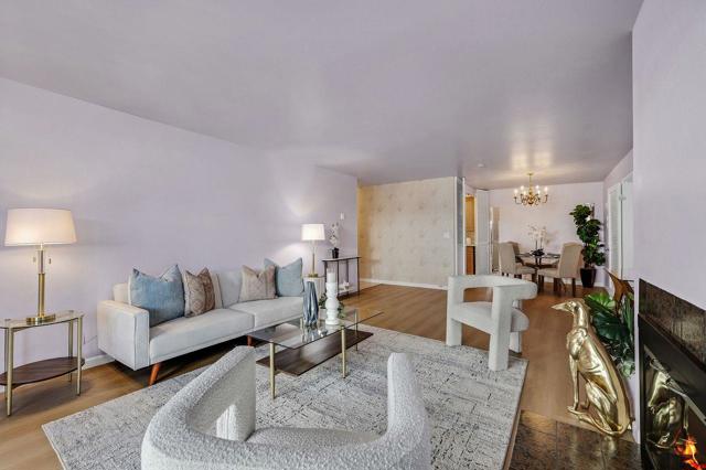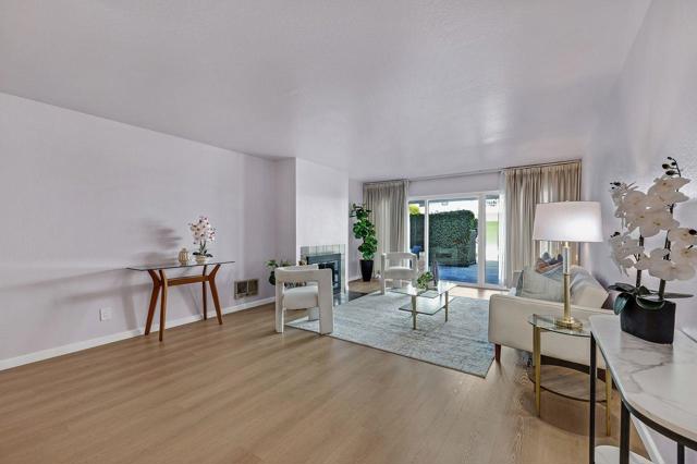 Tastefully remodeled condo in the heart of the Silicon Valley. Unit located on the first floor of a secure building. Open and spacious floor plan. Newly installed floors: luxury vinyl planks and LVP waterproof. 2 bedrooms with plenty of storage and 2 full baths.Quartz Calacatta Aria used for the shower and tub walls.kitchen with stainless steel appliances and quartz Calacatta Gold countertops. Primary bedroom with its own bathroom. Large glass doors from the living room lead to the patio where a sitting area and a pool are located.Fireplace in the Living room. Elevator is located next to unit, it leads to the washer and dryer room in the garage as well as to the assigned covered parking and to the storage room .Tennis court. Close to schools, dining, shopping, Castro street and to public transportation.