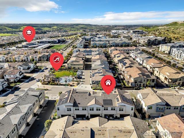 Stylishly appointed and thoughtfully designed, this 3br/2.5ba townhome is perfect for hosting! Your welcoming exclusive-use patio greets you with a private entrance, opening into an open-concept dining and living area with custom finishes. The downstairs half-bath is perfect for running to during a break during the big game, while the generously sized upstairs bedrooms provide privacy and respite. Featuring installed solar, an upstairs laundry room (no more lugging baskets up and down the stairs!), an attached two car garage (quick grocery unloads!), and more, this home will simplify your life! [See Supplemental Remarks] Ready for more? Flora & Strata at the Village of Escaya is well known for incredible amenities, including a resort-style community clubhouse, landscaped walking trails and top-rated schools. Enjoy walking to shops, playgrounds, basketball courts, an incredible pool and spa and more! This home has been meticulously maintained, freshly painted, and includes a whole-home water filtration system.