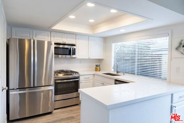 Homes in this desirable Winnetka townhome community rarely come to market. This inviting 3-bedroom, 2.5-bath townhome offers approximately 1,360 sq ft of thoughtfully designed living space and a wonderful blend of comfort and convenience. The spacious main level features attractive woodgrain luxury vinyl flooring, a generously sized living room, and a large dining area with direct access to a private patio, creating an easy indoor-outdoor flow ideal for both everyday living and entertaining. The upgraded kitchen boasts quartz countertops, recessed lighting, stainless steel appliances, a highly functional layout, and a large closet pantry for abundant storage. Just off the living room is a convenient powder bath and coat closet. Upstairs, the expansive primary suite offers peaceful views of the tree-lined walkway, two separate closets including a walk-in, and an upgraded ensuite bath. Two additional bedrooms overlook the private rear patio, while ample hallway storage adds to the home's practicality. The private patio provides direct access to the attached two-car garage, where the washer and dryer are conveniently located. Additional features include central HVAC with a Nest thermostat, guest parking, and beautifully maintained grounds with charming meandering pathways shaded by mature trees leading to the community pool area. Ideally situated adjacent to Runnymede Park and convenient to local freeways, this home offers a rare opportunity to enjoy peaceful community living with easy access to everything the area has to offer.