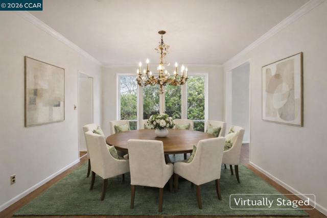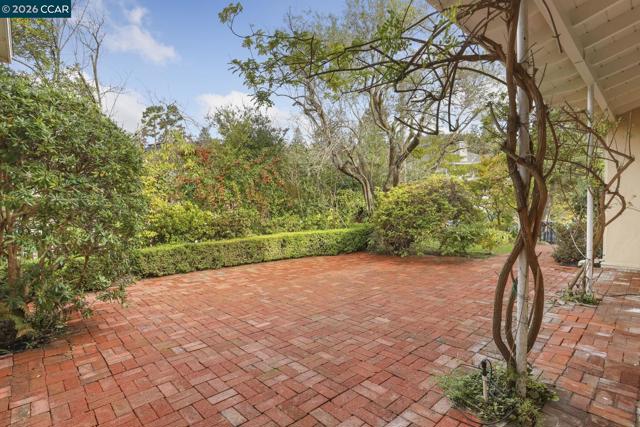 Located in the popular Claremont neighborhood, on an ideal street that ends in a turn around cul-de-sac, you'll find this beautiful 5 Bdrm, 3.5 bath home that offers a fantastic layout. Upon entering the property, you'll find yourself in a private landscaped patio surrounded by greenery. The foyer opens to an expansive living room that has French doors flanking 2 sides, with soaring ceilings and a fireplace. French doors also grace the formal dining room, leading out to the patio. You may also access the kitchen where you'll find lots of counter space, shelving for cook books, a roomy pantry and an eating nook. The long hall with windows is fit with custom cabinetry and leads to a primary bedroom suite, 2 guest bedrooms and a full bathroom. The upper lever has a guest bedroom/office, full bath and a large Primary bedroom/TV entertainment /bonus room. A laundry area, 1/2 bath and storage room are located on the lower garage level. You will have multiple choices of where to spend time outside with several level patio areas to choose from, all perfect for al fresco dining, lounging or entertaining. You cannot beat this location - close to The Claremont Hotel, a tennis club, restaurants, a bakery, hiking trails, shopping, UC Berkeley and Hwy 24. Home Energy Score is 1.