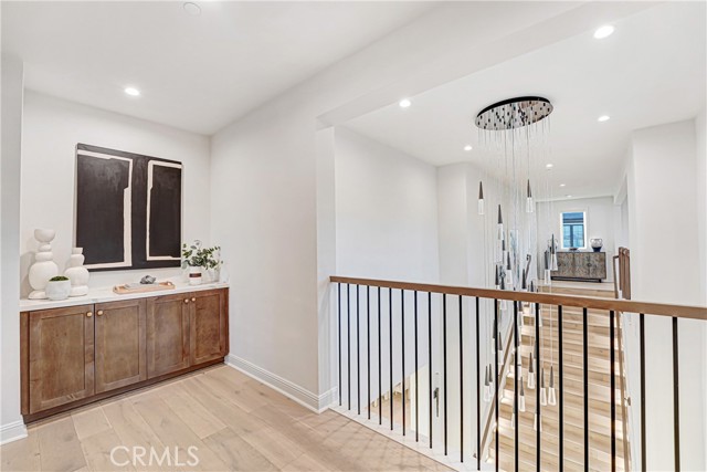 New photos reflect current status of the home. The home is beautifully staged and move-in ready with option to purchase fully furnished. Step into the pinnacle of executive and luxury in this 2022 Toll Brothers estate, fully reimagined and meticulously redesigned with bespoke finishes—far beyond builder-grade—where sweeping views, resort-style living, and unparalleled craftsmanship converge in Porter Ranch’s most prestigious guard-gated enclave. This 5,464 sq ft estate on an expansive 12,756 sq ft lot features 5 bedrooms and 6 bathrooms, including a grand double-door foyer that opens to a formal living room with fireplace, a private cinema, a temperature-controlled wine cellar, and a full downstairs en-suite—perfectly designed for guests or multigenerational living. The chef's kitchen is equipped with upgraded appliances, and a dedicated laundry room with washer and dryer is conveniently located on the second level. The expansive primary suite is expansive with a lounge area with kitchenette and full bedroom for resting, it truly serves as a serene retreat with blackout roller shades, abundant natural light, and sweeping views of the San Fernando Mountains and Los Angeles cityscape. Every bedroom and bathroom has been thoughtfully customized with high-end finishes, bespoke cabinetry, and refined materials, ensuring interiors that are far beyond builder-grade. Seamless indoor-outdoor living is at the heart of the property, with resort-style grounds featuring an in-ground swimming pool with swim-up bar, raised spa, outdoor kitchen and BBQ, covered California room, Alumawood patio cover, and expansive Fleetwood sliding doors connecting the indoor spaces to the outdoor oasis—perfect for entertaining or everyday luxury. Designed for elevated entertainment and lifestyle, the home offers formal living areas, a private cinema, a wine cellar, and a downstairs en-suite that provides ultimate flexibility for hosting, relaxing, or working from home. Additional highlights include a finished 2-car garage plus a separate 1-car garage with direct interior access. Ideally located minutes from Sierra Canyon School (K–12) and close to top-tier shopping, dining, hospitals, and the 118 Freeway, this estate provides an unmatched combination of privacy, convenience, and connectivity. Situated in Westcliffe, Porter Ranch’s most prestigious 24-hour guard-gated enclave built by Toll Brothers, this residence delivers security, discretion, and elevated living at its finest.