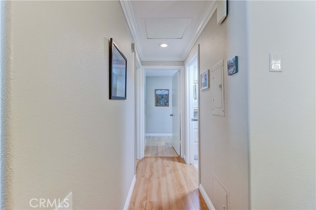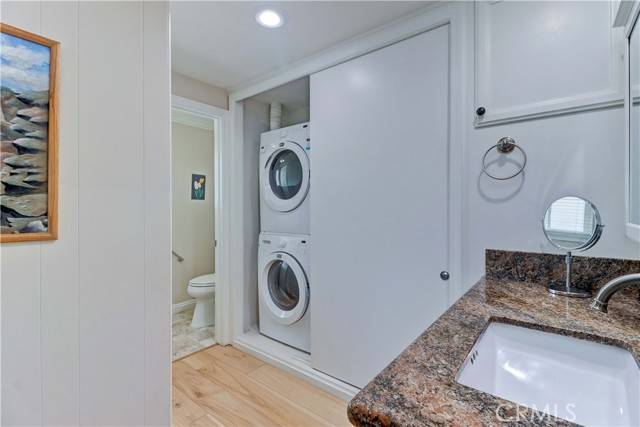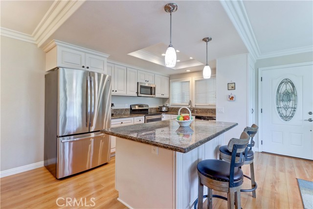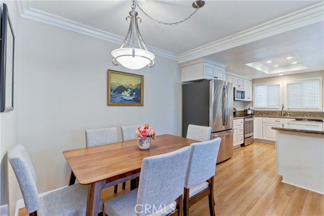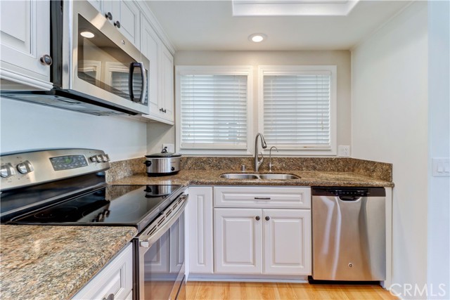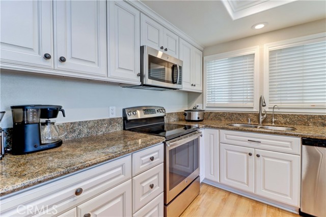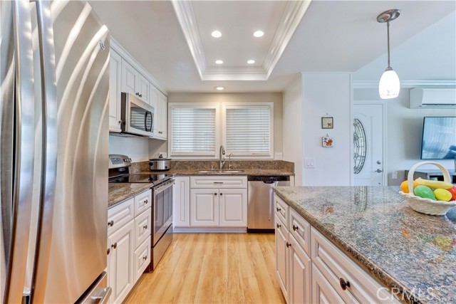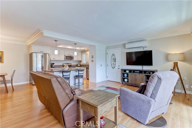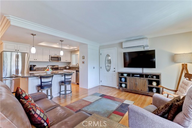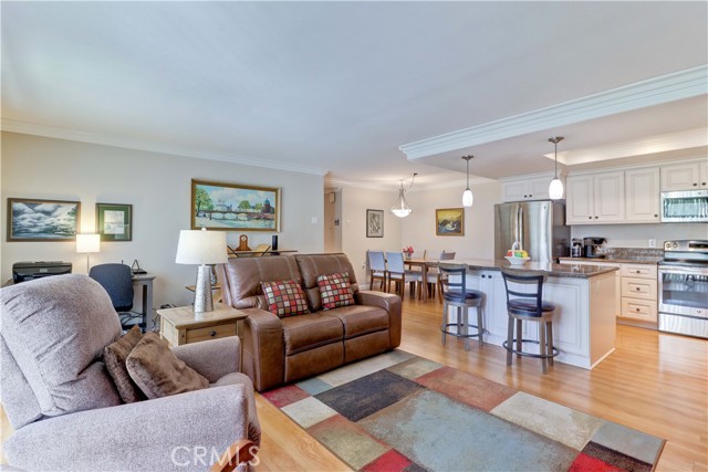 Welcome to this beautifully remodeled 2-bedroom, 2-bath garden-side Casa Linda, offering 1,009 sq ft of comfortable living in a premier 55+ community just minutes from Laguna Beach. With no one above or below, this home provides a peaceful sense of privacy along with a light, bright atmosphere throughout. Step inside through a beautiful glass-accented front door and enjoy thoughtful upgrades including crown moulding, smooth ceilings, and durable vinyl plank flooring. The open-concept kitchen is both stylish and functional, featuring a center island, stainless steel appliances, and plenty of space to cook and entertain. Double-pane windows and sliding glass doors bring in abundant natural light, enhancing the home’s airy feel. Both bathrooms have been tastefully remodeled, and the convenience of a full-size washer and dryer adds ease to everyday living. Mini-split systems provide efficient heating and cooling year-round. Nearby parking makes coming and going simple and convenient. Beyond the home, enjoy all that this vibrant community has to offer. The Village features an impressive array of amenities including a 27-hole golf course plus a 9-hole par-3 course, pickleball and tennis courts, five swimming pools, three fitness centers, and seven clubhouses. Clubhouse 4 is a standout, offering creative spaces for art, ceramics, woodworking, jewelry-making, sewing, and photography. With over 200 clubs, an equestrian center, RV parking, and close proximity to shopping, theaters, and world-class medical facilities, this is truly a lifestyle opportunity as much as it is a home.