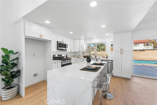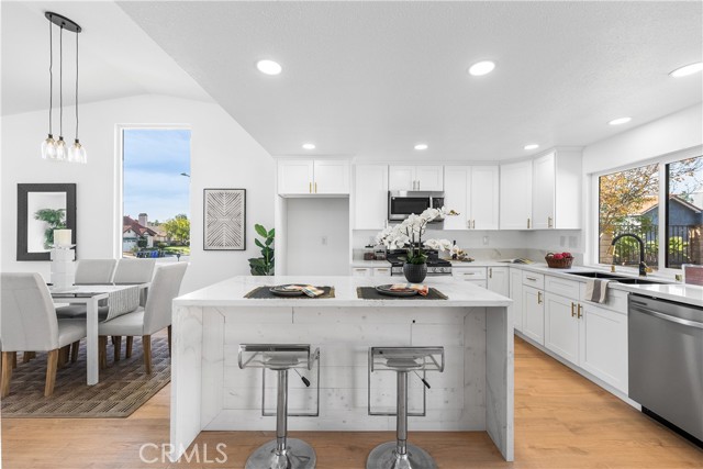 Stunning Single-Story Pool Home on Corner Lot! Welcome to this beautifully remodeled 4-bedroom, 2-bathroom pool home featuring an open and modern floor plan. Step inside to find new interior paint, new flooring, and high ceilings that create a bright and inviting atmosphere. The gorgeous new kitchen offers brand-new cabinets, quartz countertops, a huge center island, and new stainless steel appliances, perfect for cooking and entertaining. Enjoy updated recessed lighting, spacious bedrooms, and stylishly upgraded bathrooms. The large corner lot provides a huge backyard ideal for gatherings, relaxation, and outdoor fun by the sparkling pool. This exceptional home blends comfort, style, and functionality—truly a move-in-ready gem!