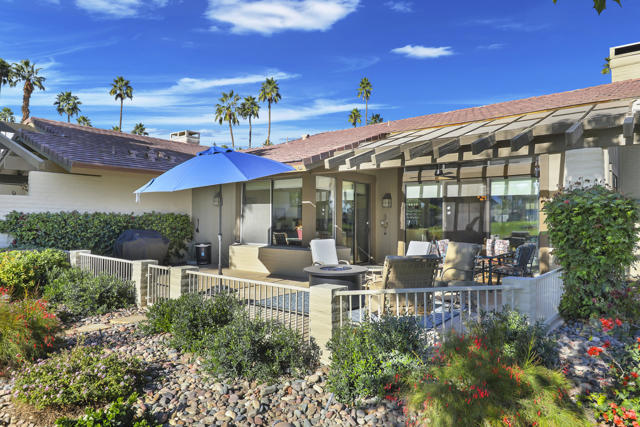 Just Reduced!! Beautiful south facing 2 bedrooms, den 3.5 bath condo in the prestigious Lakes Country Club.Step into luxury living with stunning south facing views of the gorgeous mountains and a big open double fairway.This condo boasts an open, light filled layout with high ceilings, lots of windows to capture all the beautiful mountain and golf course views. With seamless indoor- outdoor living spaces perfect for entertaining.Nestled within one of the deserts sought after communities, residents enjoy access to 27 championship holes of golf, tennis and pickleball courts, and a new state-of-the-art Wellness Center, gorgeous newly renovated clubhouse and event center.Experience one of the best of resort-style living in this exceptional turnkey residence.Upgrades include-Learning tankless water heater Water softening systemDuctless mini-split A/C system in garageTesla ChargerNew utility room with large size refrigerator, freezer, wine refrigerator, and cabinets for extra storage and sink,New gorgeous desert landscaping2024 customized golf cart with wireless sound bar and charger.Full list will be available to pick up at the condo.