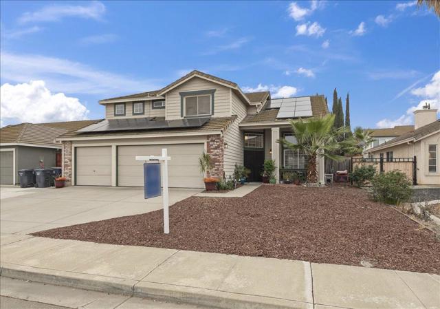 Unbelievable price for this square footage! Dont miss this beautiful, spacious home in the highly sought after community of Pheasant Run! This charming property offers abundant living space with 4 bedrooms and 3 full bathrooms, spread over 2,440 square feet. Situated on a 6,000 square foot lot, this home is perfect for families seeking comfort and convenience. The eat-in kitchen with walk-in pantry and island, is designed for casual meals and the dining room / living room combo is perfect for hosting more formal gatherings. Enjoy cozy evenings by the fireplace in the separate, expansive family room, providing ample space for relaxation and entertainment. With central air conditioning and ceiling fans, you can stay cool throughout the year. The house is equipped with central forced air heating and A/C, and plentiful solar panels for great energy efficiency. Practical amenities include a utility room for laundry needs, a spacious 3-car garage and a roomy dog run. Located within the Tracy Joint Unified School District, this home is ideal for families prioritizing comfort and space. Don't miss the chance to make this beautiful Tracy home yours!