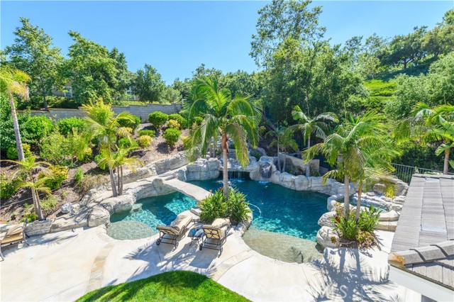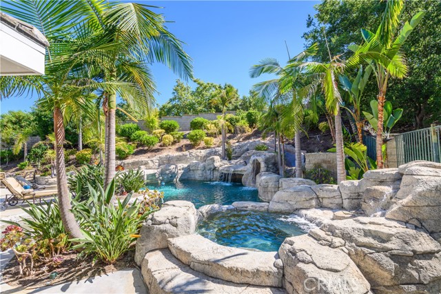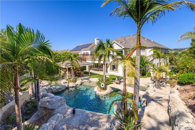 Gorgeous two-story Located at the Guard gated community in Coto de Caz. Corner Location with Mountain view. Open floor plan with high ceiling , features 5 bedrooms, 4.5 Bathrooms with bonus room and Office. Downstairs has one bedroom with full bath. Beautifully landscaped back yard includes pavilion w/fireplace, rock pool w/ SPA & waterslides. Convenience close to award-winning schools, shopping, restaurants and Toll roads.