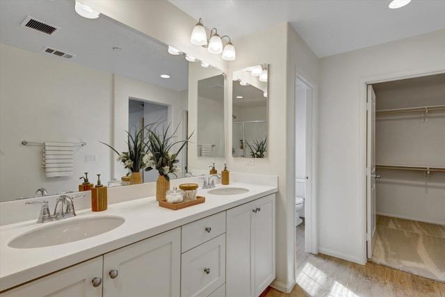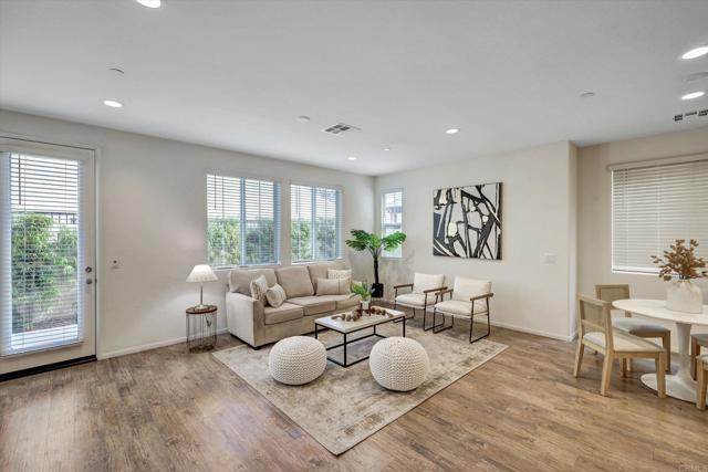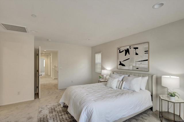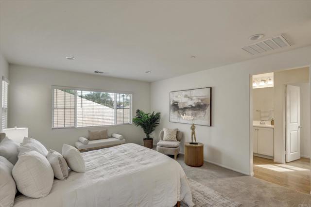 Built in 2020 and still feeling brand new! This modern Laurel Creek home has been freshly updated with brand-new carpet and a full interior paint refresh, making it truly move-in ready. Step inside to an open and inviting floor plan where the living, dining, and kitchen areas flow seamlessly together. The contemporary kitchen shines with quartz countertops, stainless steel appliances, shaker cabinetry, and a center island that doubles as a casual dining or work-from-home spot. Upstairs, the spacious primary suite features an oversized walk-in closet and en-suite bath with dual sinks and walk-in shower. Two additional bedrooms are joined by a versatile loft — perfect as a family room, playroom, or office. Energy-efficient upgrades include solar, a tankless water heater, and smart home features to keep life convenient and affordable. Community amenities include a spa, BBQ area, and neighborhood parks, plus front yard maintenance included. With easy access to Highway 78 and just minutes from Vista’s growing mix of restaurants, coffee shops, breweries, shopping, and entertainment, this home offers the ideal balance of style, comfort, and convenience. A rare opportunity to own a nearly new home in a thriving community — don’t miss it!
