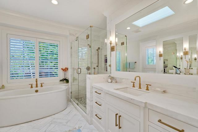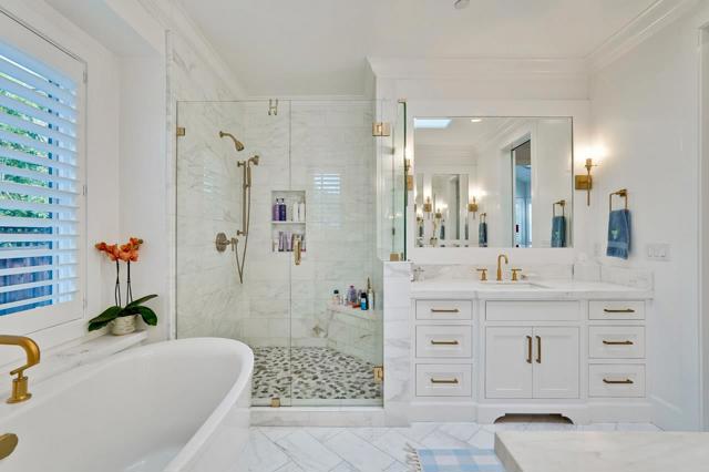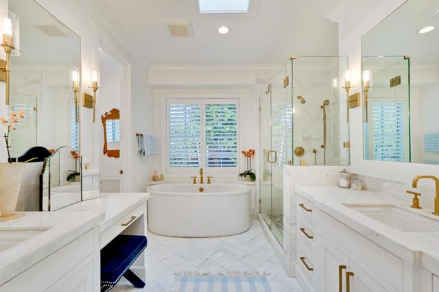 This exquisite home was constructed in 2019 by a local premium builder as his private residence & is situated mid-block on one of North Los Altos' most desirable streets, the property is just a few short blocks from downtown Los Altos. This style is characterized by its clean lines, contemporary color palette, and the integration of functional details with modern design, creating a timeless but current aesthetic. The home centers around an expansive great room with its 13 foot ceiling, designed to connect the community living area with the rear patio, yard, and pool facilitating a seamless indoor-outdoor living experience through a 12 foot glass Nano slider door system. Abutting the great room, the chefs kitchen features a large island with seating and is equipped with premium Thermador, Meile and Dacor appliances, lending itself to everyday cooking, while also setting the stage for a superb entertaining environment. An attractive detached pool house enhances the homes versatility, which is situated in a private corner of the rear yard and opens to a spacious patio surrounding the pool through a set of French doors. The pool house includes a kitchenette, full bath & HVAC. The square footage figure includes the pool house. *Shown by appointment only, no Open Houses or Sign.*