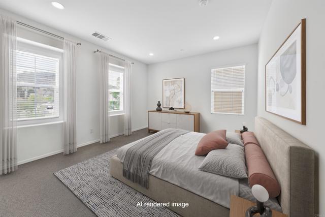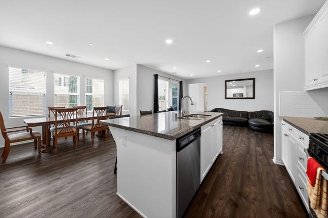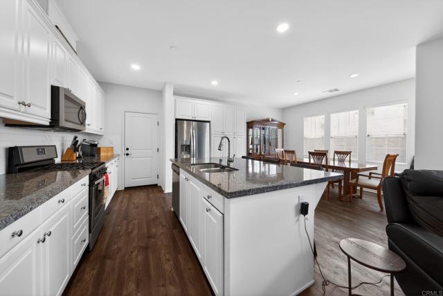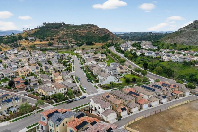 Welcome to Harmony Grove Village, where comfort, style, and community come together. Built in 2017 and offered for the first time, this beautifully maintained two-story home is lightly lived in and truly move-in ready. Situated on a premium corner lot, you’ll enjoy added privacy along with close proximity to Village Park is just a short stroll away. Designed with both function and modern living in mind, the home features a formal entry that opens into an inviting living space. The chef’s kitchen is a standout, showcasing a granite island with seating for three, upgraded appliances, and thoughtful builder enhancements throughout. Step outside to an oversized, low maintenance backyard complete with a spacious patio, built-in planter beds, and drought-tolerant landscaping which is perfect for relaxing or entertaining year-round. The flexible floor plan includes a convenient downstairs bedroom and full bath, ideal for guests or multigenerational living. Upstairs, the primary suite is positioned at the front of the home, enjoying northeast exposure for natural light and energy efficiency. The en-suite bath offers dual sinks, an expansive vanity, soaking tub, separate shower, and a generous walk-in closet. A versatile loft separates the primary suite from two additional bedrooms, creating a functional layout with added privacy. The secondary bath is thoughtfully designed with a separate sink area and water closet, and the upstairs laundry room adds everyday convenience. Residents of Harmony Grove Village enjoy scenic walking trails, sidewalks, and access to two community parks. Ideally located near shopping, dining, and easy freeway access to both I-15 and Hwy 78, this home offers the perfect balance of tranquility and connectivity. Don’t miss this rare opportunity to own in one of Escondido’s most desirable communities.
