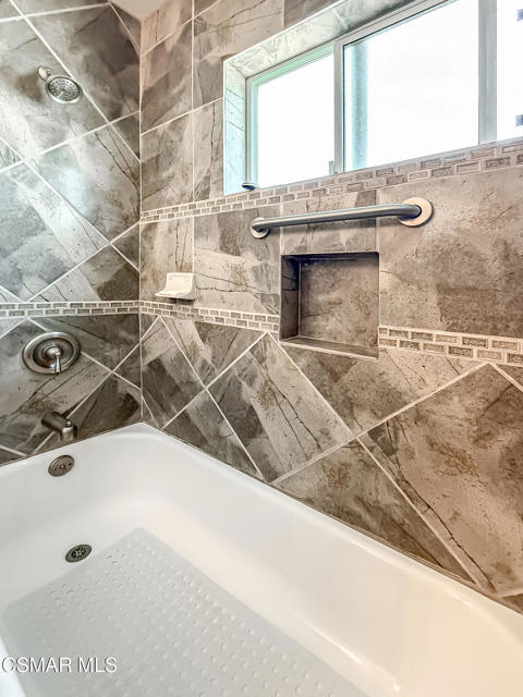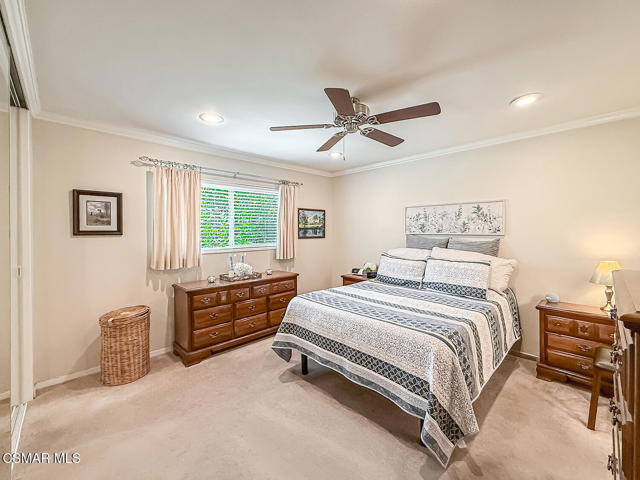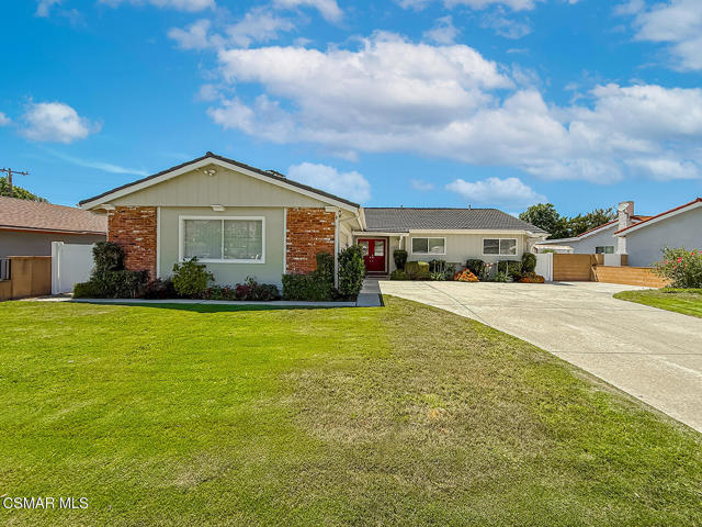 Sprawling single-story home offering 4 bedrooms and 2.5 baths, designed for comfortable everyday living with thoughtful updates throughout. A welcoming double-door entry with beveled glass and a stone-surfaced entry sets a warm tone as you enter. Inside, the home features smooth ceilings and recessed lighting throughout most of the home. The living room includes a classic brick fireplace with hearth and wood mantel, along with an oversized slider with wood shutters that opens to the covered patio--creating an easy indoor-outdoor flow. The galley kitchen offers a breakfast nook and opens to the family room, with a conveniently located powder room nearby. From the kitchen window, enjoy a view of vibrant bougainvillea, adding a bright and inviting touch. The primary bedroom offers double closets with mirrored wardrobe doors and built-in organizers, along with an updated en-suite bath. Both bathrooms have been remodeled with clean finishes. Additional features include tile flooring in the entry and hallways, abundant linen storage, dual-pane windows throughout most of the home, a full-house built-in generator, and an indoor laundry room. The home also features a metal coated still roof for added durability. The garage is well-equipped with built-in cabinetry along the walls and overhead storage racks. There is also possible RV parking on the right side of the driveway. The backyard is designed with low-maintenance, drought-tolerant landscaping and includes two orange trees. The covered patio with tile flooring offers a comfortable outdoor space to enjoy year-round.
