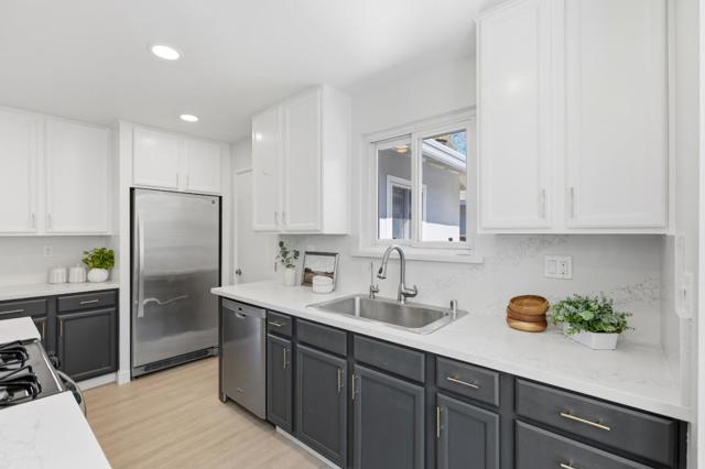 Charming and beautifully remodeled single-level ranch home on a picturesque tree-lined street in the heart of Santa Clara! This 3BD/2BA home features a bright, sun-filled living room with a wall of windows and a cozy fireplace, seamlessly connecting to the dining area with a modern chandelier. The updated kitchen offers stainless steel appliances and ample cabinetry, perfect for both everyday living and entertaining. The private primary suite is tucked at the rear of the home and includes a walk-in closet with built-in organizers, while two additional spacious bedrooms share a large hall bath. Thoughtful upgrades include high-efficiency central heating and A/C, Nest thermostat, whole-house water filtration system, Ring doorbell, and a finished garage with app-controlled opener. Enjoy a low-maintenance backyard designed for California living, complete with an outdoor kitchen, built-in BBQ, large patio, and serene water-wise garden. Ideally located just minutes from Nvidias new campus, Santa Clara University, Santana Row, Valley Fair, Santa Clara Square, and major commute routes including San Tomas Expressway and Highway 101. MUST SEE!