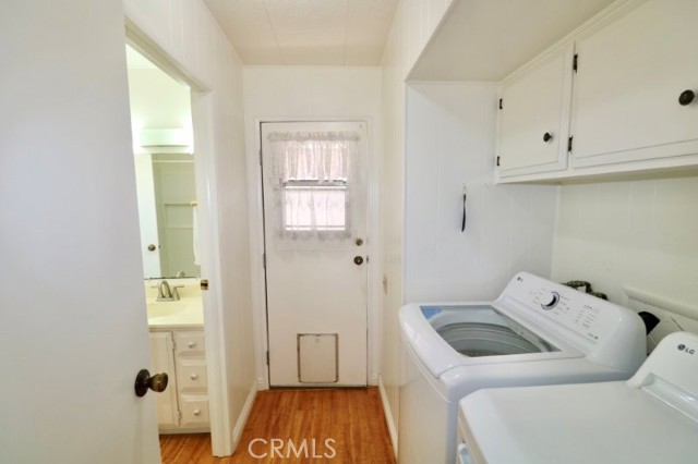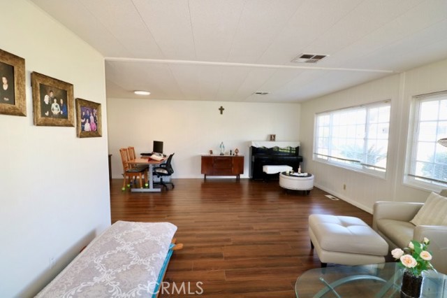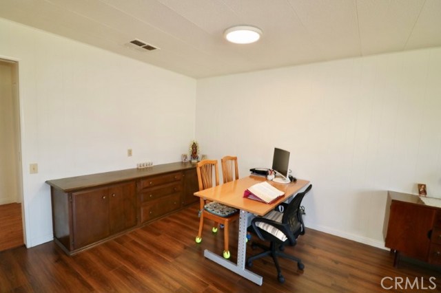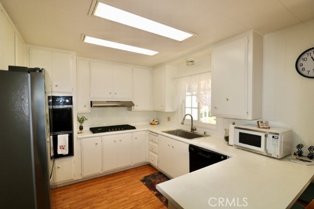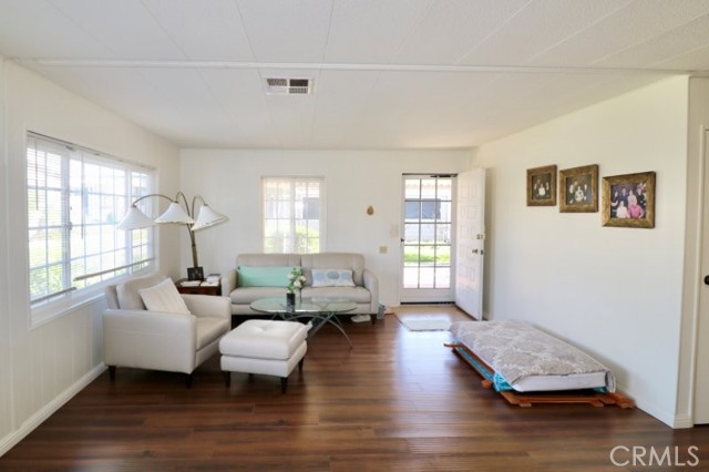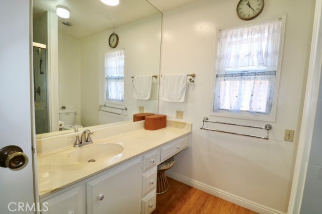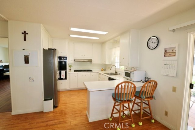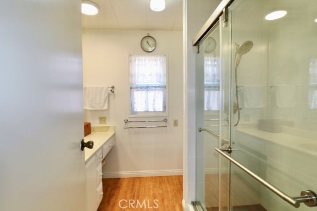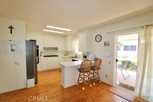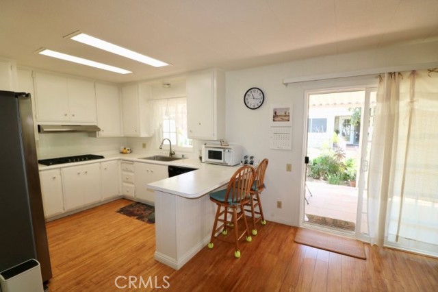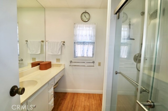 Senior Living 55 + This spacious 2-bedroom, 2 bath home features a light antique white interior, with laminate flooring throughout. The spacious kitchen features white cabinetry providing plenty of storage, gas cooktop and breakfast bar opening into a den area, and generous laundry room. Master bedroom features a large walk in closet, with attached beautifully remodeled bath featuring a large walk in shower, built in vanity and linen closet. Guest bedroom has a walk-in closet and attached, newly remodeled bath. Extras include energy efficient dual paned windows, ceiling fans, large storage shed, side by side parking and attractive curb appeal and plenty of gardening area. The roof is new and foundation piers have been recently replaced. Stop by to see this gem before it’s sold!
