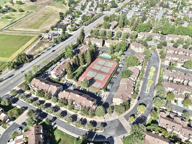 MOVE-IN READY! Spacious 3-bedroom, 2-bath condo in the desirable Morgan Village community. This second-floor corner unit features vaulted ceilings, arched windows, and great natural light throughout. Bright living room with cozy gas fireplace opens to a private balcony. The kitchen offers a large bay window with mountain views. Primary suite includes mirrored double closets, plus in-unit laundry and laminate flooring throughout. Enjoy views of the pool and tennis courts. Includes 2-car tandem garage, 1 assigned space, and ample street parking. Community amenities include pools, tennis courts, and lush landscaping. Conveniently located near Hwy 101, shopping, dining, parks, and hiking trails.