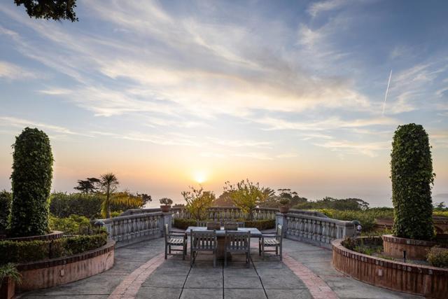 Offered for the first time in nearly 50 years, this extraordinary ocean view Carmel Highlands estate is a once-in-a-lifetime opportunity for coastal privacy and luxury convenience. Perched above the pristine Spindrift coast, it boasts sweeping, unobstructed whitewater views of Point Lobos and Yankee Point, and the orientation of the house enables views of the sun dropping into the ocean each night of the year. The architectural soul of the home has remained intact, with major renovations done so seamlessly that they feel original. Spanning four levels, the main house is sophisticated and features a sauna, steam shower, theater, and expansive terraces and balconies overlooking lush and mature grounds. Hand-carved limestone fireplaces sourced from Arroyo Seco with French-style cut brick lend warmth and timeless character in the library and living room. 2 flat, usable acres, comprised of two lots of record feature tranquil fountains and a rare, natural spring for the landscaping. A detached, 2-bay garage and private studio offer flexibility for guests or an on-property caretaker. Studded with redwoods and screened by dense hedges, the property provides serenity, security, and privacy. This is not just another house for sale, it is an opportunity to acquire a rare generational legacy