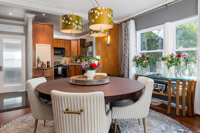 Don't miss seeing this classic Spanish style home, gracefully situated on the corner of two peaceful, tree lined streets in the highly desirable residential neighborhood of North Monrovia. This is a home you can live in should you wish to, making it an appealing option for multi generational living or rent one unit to supplement income. Rich in architectural charm and thoughtful design, the property continues to offer flexibility, with the possible potential to be converted into a true single family residence with some modification. The corner orientation provides excellent natural light, added privacy, and a true neighborhood presence. The Oaks Avenue unit is a refined one bedroom, one and one half bath residence designed for both comfortable living and entertaining. Restored white oak hardwood floors extend throughout the open floor plan, creating warmth and continuity. The spacious living room features an elegant coved ceiling and a custom built in media center. The dining room serves as a central gathering space, ideal for family meals or hosting guests. The kitchen is beautifully appointed with granite countertops, custom cabinetry, and modern appliances. This side of the property also includes a long gated driveway, a covered porch with old world architectural influence, and a private garage. Facing Acacia Avenue, the second residence offers a generous two bedroom, two bath layout with excellent separation of space. Dual entrances are positioned at either end of a covered porch with a distinctive turret, adding classic Spanish character. The open living area flows into the kitchen, which features granite countertops, abundant cabinetry, and ceramic tile flooring. White oak floors run throughout most of the home. Recent improvements include fresh interior paint, updated plumbing through repiping, newer kitchen appliances, a washer and dryer, a newer thermostat, and a newer water heater. A gated side yard provides access to a garage, laundry room, and a private covered patio. Both residences benefit from new electrical inside and out, central heating and air conditioning, crown molding, refined fixtures and lighting, and meticulously landscaped grounds. Located near Old Town Monrovia, the property enjoys close proximity to dining, shopping, the library, theater, and local markets, offering timeless Spanish character in one of Monrovia's most sought after neighborhoods. Come visit and see for yourself!