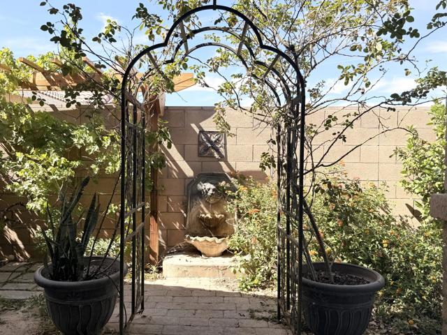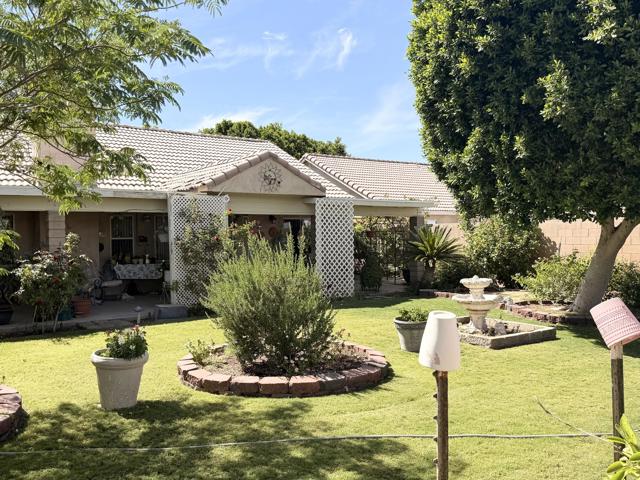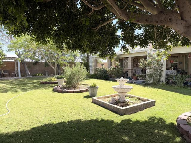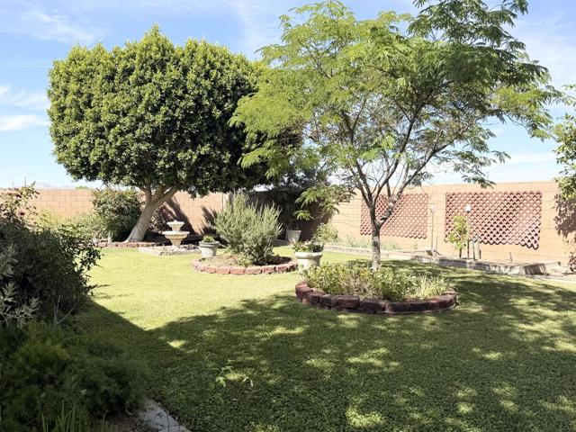 Welcome to this well-maintained 3-bedroom, 2-bath home located on a desirable end lot, offering added privacy with only one neighboring property. Just minutes from local shopping and dining, this home blends comfort, convenience, and thoughtful upgrades throughout.Inside, you'll find updated kitchen and bathroom counters, a mix of tile and carpet flooring, and custom closet systems designed for easy organization. The home is equipped with central air and an alarm system for year-round comfort and peace of mind.Step outside to a beautifully landscaped front and backyard featuring mature trees that provide abundant shade during warmer months, along with citrus trees for a true desert touch. The fully enclosed backyard with block wall offers privacy, while the sprinkler and drip irrigation systems help maintain the lush landscaping with ease.Additional highlights include a spacious 3-car garage and a side yard storage shed for added functionality.This is a move-in ready home that has been lovingly cared for and offers both space and comfort in a great location.
