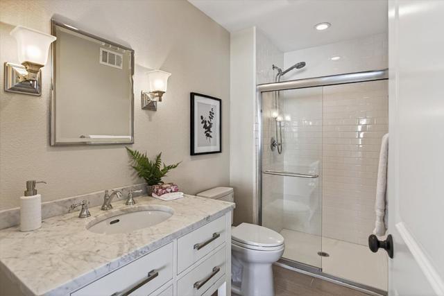 Welcome to this beautifully remodeled/updated 2 bedroom 2 full bathroom condominium. The thoughtfully designed kitchen features high quality appliances like a Viking (oven), Bosch (dishwasher and microwave) and lieberher (refrigerator). Beautiful marble countertops, exquisite cabinets and a lovely farm style sink complete the picture. The bathrooms have been updated to the same standard with the hall bath featuring a shower over soaking tub and the primary, a large walk in shower. Double paned windows, central heating and A/C provide for year round comfort. Relax in the living room with its soaring ceiling, abundance of natural light and a beautiful limestone gas fireplace. Lastly, the separate dining area provides an elevated dining experience with lovely views to the patio and green space beyond. Children would attend top Cambrian Elementary Schools and Branham High School.