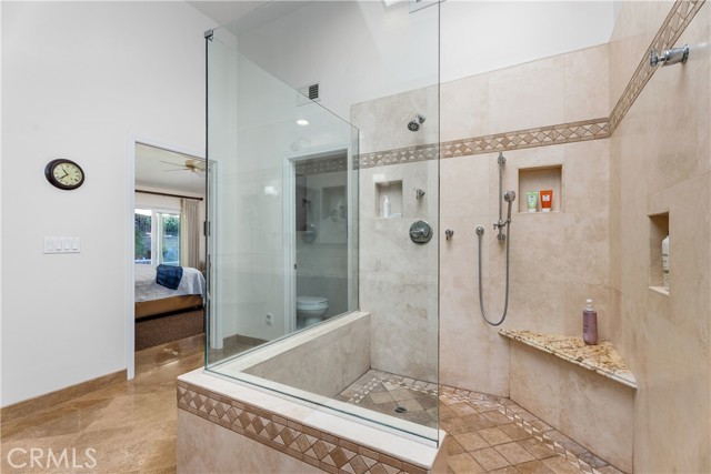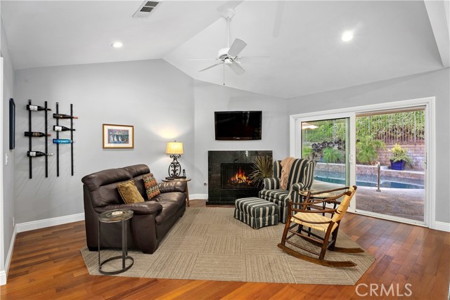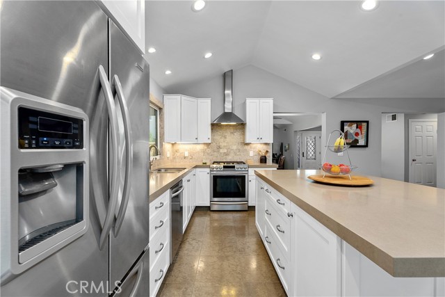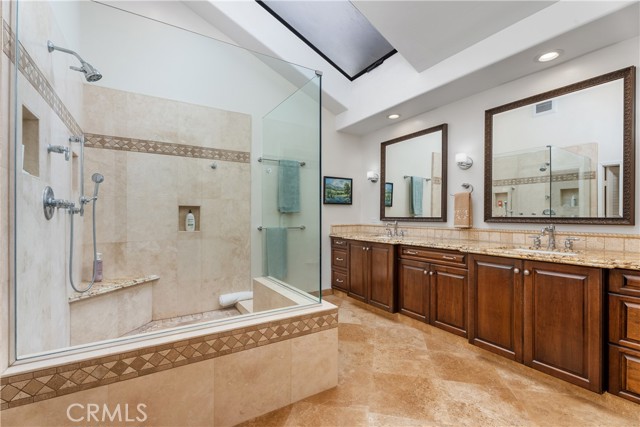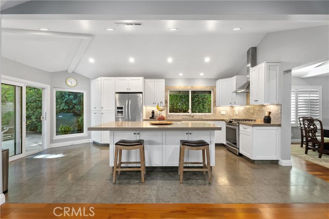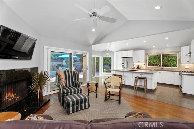 Nestled in the highly sought-after Andalusia community of Mission Viejo, this beautifully remodeled single-story home blends timeless design with modern comfort—just a short stroll from Lake Mission Viejo and Olympiad Park. Have you looked at single level homes and wished there was more space and privacy? This home offers both! With a generous 2,297 square feet of living space situated on a serene and private 6,300 lot, this home welcomes you with a stylish paver driveway, front porch, and entry, Pella entry door with sidelights, and mature, natural landscaping. Step inside to discover an open and airy floor plan graced with vaulted ceilings, exposed beams, and a double-sided brick fireplace connecting the spacious living and dining rooms—perfect for gathering and entertaining. The modern kitchen features custom Shaker cabinets, Caesarstone countertops, an oversized island with storage, and stainless steel appliances. The kitchen opens to a cozy family room with a corner granite fireplace and direct views of the backyard oasis. The primary suite is generously sized (approx. 15' x 21') and offers a luxurious remodeled spa-inspired bathroom with a large walk-in shower, skylight, separate water closet, and sliding doors leading directly to the PebbleTec pool and spa. The suite also includes a massive walk-in closet (approx. 7' by 16') with a custom Elfa storage system. Two additional bedrooms feature large mirrored closets, ceiling fans, and abundant natural light. A second generously-sized bathroom offers dual sinks. An inside laundry with included washer and dryer is just down the hall. Throughout the home, you'll find stone and teak hardwood flooring, skylights, newer dual-pane windows, and additional attic insulation for year-round comfort. The private backyard is a true retreat—complete with a large PebbleTec pool (8 feet deep), separate spa, and spacious patio area ideal for outdoor entertaining. Additional highlights include an oversized two-car garage with insulated door, cabinets, and overhead storage, an ADT security system, and an owned Culligan water softener. Cox cable and Cityside Fiber connectivity are both available. The side yard access provides the perfect space for a dog run or a garden or... Enjoy the best of Mission Viejo lakeside living — swim, sail, or relax by the water, then return home to the comfort and serenity of this exceptional Andalusia residence.