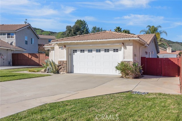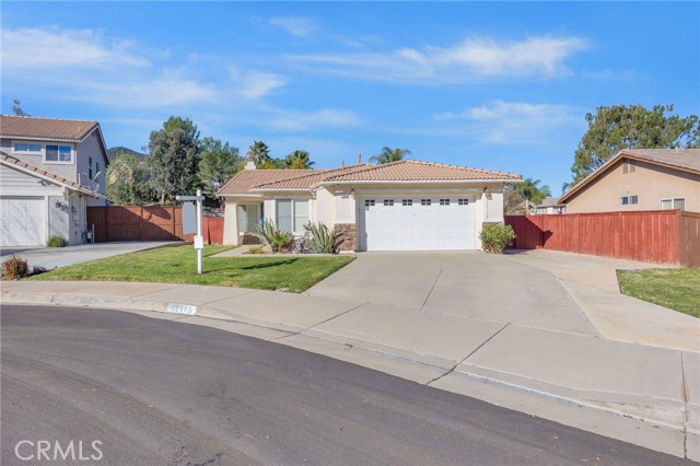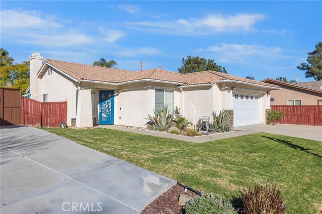 A charming 3-bedroom, 2-bath single story home located on a well-kept cul-de-sac in one of Corona's desirable neighborhoods. This beautifully maintained property is truly move-in ready and has an attached two-car garage. This home features fairly new flooring in the living room, front bathroom, front bedroom, and hallway. Step inside to an inviting open-concept layout that seamlessly connects the living room, dining areas, and kitchen perfect for entertaining and everyday living. The dining area features a cozy fireplace, adding warmth and character to the space. There are shutters throughout the home adding a touch of modern elegance. Outside, you will find a nice-sized backyard ideal for outdoor gatherings, gardening, or simply relaxing. The long driveway offers plenty of parking space for multiple vehicles. Located near parks, schools, shopping, and easy freeway access. This home offers the perfect blend of comfort and convenience.