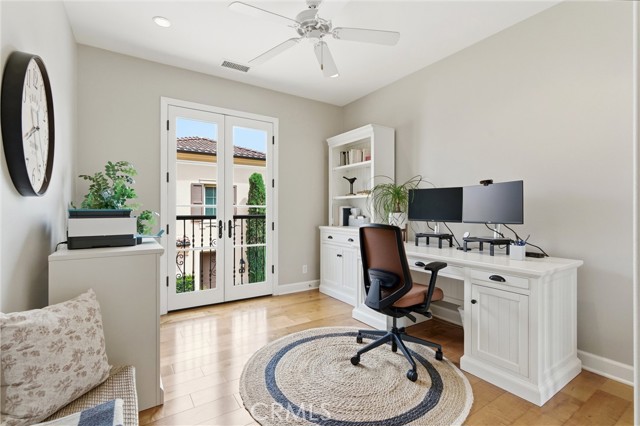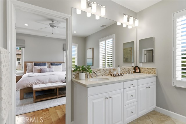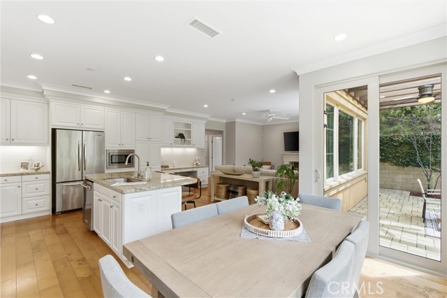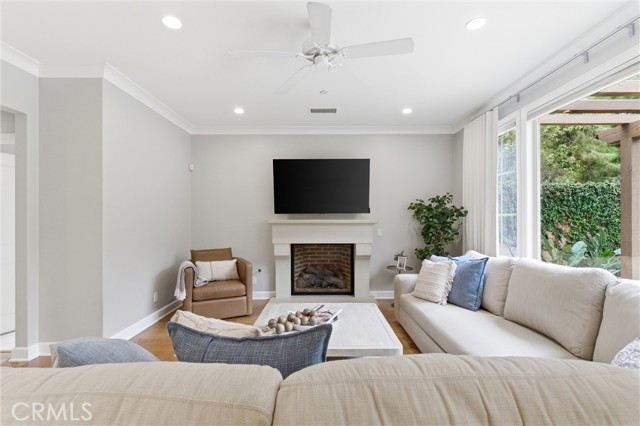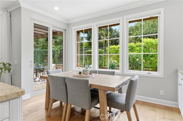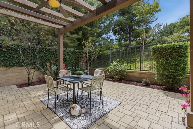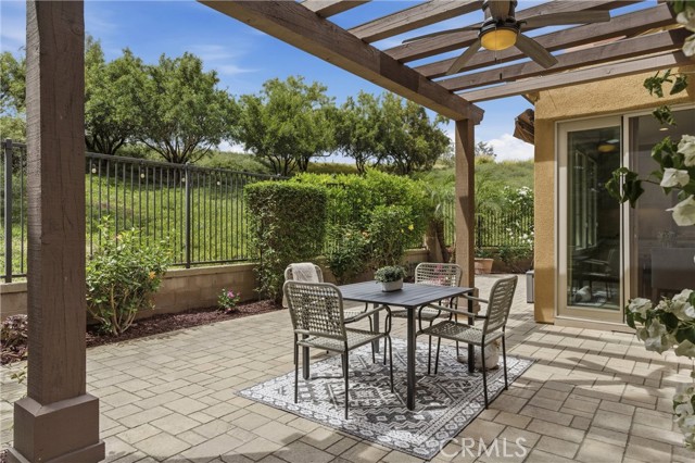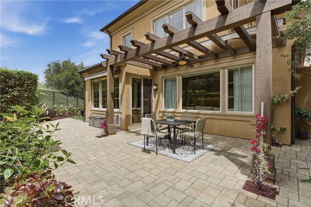 A rare opportunity in Irvine—this is the one buyers wait for: welcome to 23 Bianco, a true “unicorn” property offering exceptional privacy and space. Ideally situated in the coastal foothills near the gateway to Laguna Beach and just moments from the Irvine Spectrum, this 3-bedroom, 2.5-bathroom home is located within the prestigious 24-hour guard-gated community of Laguna Altura, known for its central location and elevated setting. With no neighbors on either side or behind, the residence delivers an unparalleled sense of seclusion that is almost impossible to find in this market. Set on an expansive 12,348 square foot lot, the outdoor space is just as impressive as the home itself. Enjoy a beautifully designed paver patio complete with a pergola featuring a fan and light, plus an awning for added shade—perfect for year-round entertaining. The oversized yard includes a large grass area and mature fruit trees, creating a private retreat ideal for relaxing, entertaining, or enjoying outdoor activities. Inside, the home offers 1,868 square feet of thoughtfully designed living space with 9-foot ceilings and an abundance of natural light. Hardwood flooring flows throughout both levels, with carpeted stairs for added comfort and quiet. The interior was freshly painted in 2025, complementing the bright white cabinetry and timeless granite countertops found throughout. The spacious primary suite features a walk-in closet, walk-in shower, and soaking tub, creating a true retreat. Secondary bedrooms are enhanced with charming Juliet balconies, adding character and architectural interest. Additional highlights include crown molding, double-paned windows, custom window coverings, and awnings over southwest-facing windows for energy efficiency and comfort. Practical upgrades include an upstairs laundry room and a garage with epoxy flooring for a clean, polished finish. Residents of Laguna Altura enjoy access to multiple parks, playgrounds, and a resort-style pool and spa—enhancing the lifestyle this home already offers. The property is also zoned for the highly acclaimed Irvine Unified School District, one of the top-performing school districts in the state.