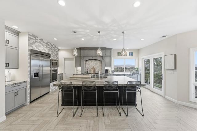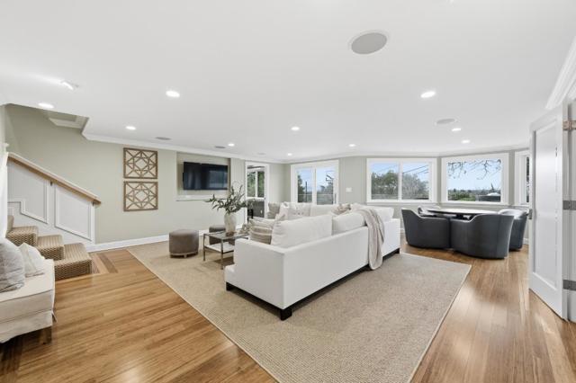 This exceptional 5 bedroom plus office home with panoramic views is an entertainers dream! Open, light-filled with high ceilings and a thoughtfully designed floor plan that maximizes functionality and flow. The inviting living room features a fireplace and opens seamlessly to the side yard. Gourmet chefs kitchen designed for both everyday living and hosting on a grand scale. Large center island with breakfast bar, two dishwashers, a walk-in pantry, custom built-in cabinetry with desk, and an expansive dining are all framed by incredible views. Step out to the balcony with a built-in barbecue. The entry level includes 3 bedrooms, highlighted by a private primary suite, plus two additional bedrooms that share a full hall bath. Downstairs offers exceptional versatility with a spacious family room, wine room, two additional bedrooms, a full hall bathroom, and a private office or 6th bedroom with a separate entry. A laundry room with two washer and dryer sets and a half bath complete the lower level. Relax or entertain in the backyard featuring a sprawling lawn, patio, spa and breathtaking views. Located moments from excellent San Carlos schools, vibrant downtown restaurants and shops, and close to streamlined commute routes. This home truly blends comfort and style in every detail.