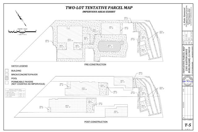Unique Opportunity in Burlingame's Sought After Easton Addition! The famed Easton Addition is known for its pristine layout, gentle grades, serene landscape, play friendly & walk to anywhere. Presenting a unique opportunity to acquire a huge parcel with a prime Easton Addition Setting! Total Lot Size: ± 16,785 SqFt. Many options: Enjoy the home as-is or Renovate Existing Home or Build 2 New Homes. Existing home is 3 BRs, 4 BAs w/ huge kitchen/family room, formal dining room, formal living room, large primary suite, incl. ground floor bedroom, office/laundry room, large detached garage w/ full bathroom, changing room & loft/storage area, high ceilings, abundant natural light. A SB9 application has been completely approved by the City of Burlingame & is submitted for recording with the County of San Mateo. The lot split will provide two parcels: Lot A Proposed plans are for a ±2,851 SqFt Home + 307 SqFt Garage & 328 SqFt ADU Consisting of 4 BRs + den/office, 5-1/2 BAs, huge living-kitchen-family room environment, detached Garage w/ ADU. Lot B Proposed plans are for a ±3,484 SqFt Home + 310 SqFt Garage + 400 SqFt ADU, Consisting of 4 BRs + den/office, 5-1/2 BAs, huge living-kitchen-family room environment, detached garage w/ ADU.