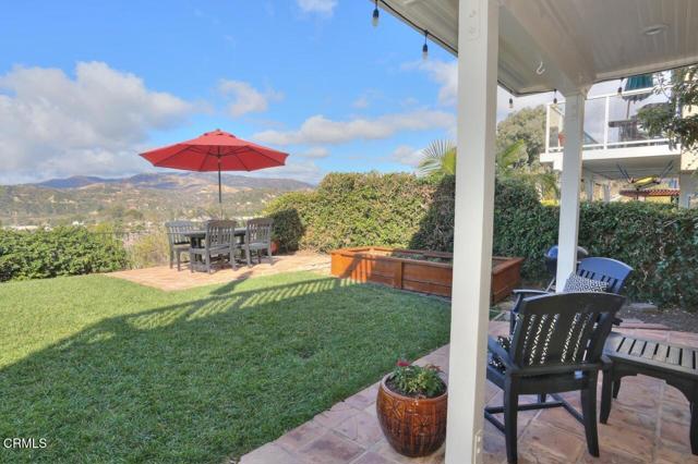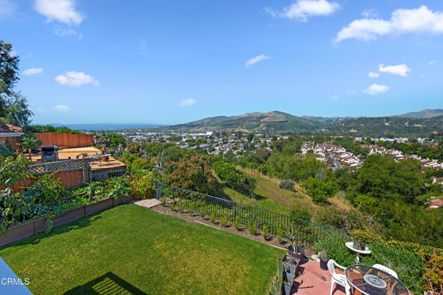 Brock Hills Beauty with Panoramic Views in West VenturaPerched high in the sought-after hills of West Ventura, this beautifully upgraded home offers breathtaking panoramic views of the mountains, ocean, Ventura River Valley, community orchard, and city below. This charming 3-bedroom, 2.5-bath residence spans approximately 1,633 square feet and showcases pride of ownership with over $175,000 in thoughtful remodeling and enhancements.Step inside to discover a light-filled interior featuring hardwood floors throughout both levels, soaring cathedral ceilings in the living room and primary bedroom, and elegant custom details including beam work, wrought iron railings, and designer tile accents. The completely remodeled kitchen is a standout, boasting quartz countertops, new appliances, and modern finishes perfect for everyday living and entertaining.All three bedrooms are conveniently located upstairs, including an inviting primary suite designed for comfort and relaxation with a custom shower and spa-like ambiance. A secondary bedroom features a private balcony and sliding doors framing beautiful ocean views--an ideal setting for a home office or creative space.The private backyard offers a peaceful retreat with scenic vistas, a covered patio with stamped concrete, raised-bed vegetable garden, and included BBQ--perfect for outdoor dining and gatherings. Additional highlights include dual-pane windows, air conditioning, an expanded dining area, and a newly epoxy-coated garage floor.Located in the desirable Brock Hills community, residents enjoy a low HOA fee of $165/month and access to a charming community orchard just below the property. Conveniently situated near top-rated schools, scenic bike paths to the beach or Ojai, and easy access to Highway 33 and the 101 Freeway, this home offers the perfect blend of tranquility, convenience, and coastal living.Don't miss this rare opportunity to own a view home in one of West Ventura's most desirable neighborhoods.