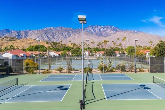 Private Palm Springs Bungalow with Mountain Views in Canyon SandsLooking for the ease of condo living with the feel of a single-family home? This beautifully maintained, single-level detached bungalow in Canyon Sands offers the perfect blend of privacy, comfort, and resort-style amenities.Ideally situated in a quiet, central location within the community, this home enjoys serene west-facing mountain views and sits adjacent to one of seven pools and spas. Inside, expansive UV-protected picture windows fill the space with natural light and open to a large, private patio--perfect for seamless California indoor-outdoor living.The home features an upgraded kitchen with stainless steel appliances and water purification system, upgraded bathrooms, tile flooring throughout, a cozy gas fireplace, a large walk in closet, and a smart Nest thermostat. A spacious private two-car attached garage adds storage space and value.Residents of Canyon Sands enjoy lush, park-like grounds along with five tennis and 3 pickleball courts and seven pools and spas, creating a true desert retreat lifestyle. 30 day minimum rental.Showings by appointment (30-60 minutes notice requested).