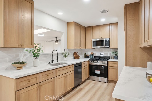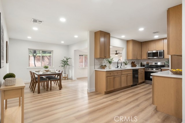 Beautifully Remodeled Single-Story Gem with Paid-Off Solar! Welcome to this stunning 4-bed, 2-bath single-story home located in one of Corona’s most desirable neighborhoods. This turnkey property has been completely remodeled inside and out and is ready for you to move in just in time for the holidays! Step inside to find a bright, open layout featuring new luxury vinyl flooring throughout, fresh interior and exterior paint, and a modern chef’s kitchen with new oak shaker cabinets, quartz countertops, Arteko subway tile backsplash, and brand-new stainless steel appliances. Enjoy peace of mind and energy savings with paid-off solar panels and a low-maintenance yard that’s been freshly landscaped with new sod. The spacious, fully fenced backyard is perfect for kids, pets, or entertaining guests. Located in a quiet, well-maintained community that offers access to a sparkling pool and is conveniently close to freeways, shopping, and top-rated schools — this home truly has it all. Don’t miss your chance to make this beautifully upgraded home yours. Schedule your showing today and celebrate the holidays in your new Corona dream home!