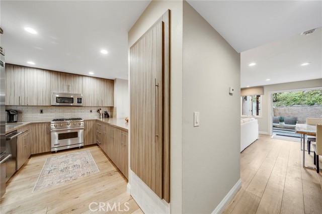 Located in the heart of Laguna Beach's coveted HIP District, 247 Calliope is positioned as an ideal 1031 exchange property, full-time residence, or lock-and-leave vacation home, just moments from world-famous beaches, 5-star dining, and destination boutiques. This beautifully modernized 1,500-square-foot condo effortlessly combines comfort, style, and sophistication. With 3 spacious bedrooms and 2 luxurious bathrooms, the home features a soft contemporary design that offers a refined living experience. The chef-inspired kitchen, outfitted with Viking Professional brushed stainless steel appliances, sleek quartz countertops, and a timeless subway tile backsplash, effortlessly flows into the expansive great room, perfect for both relaxed lounging and casual dining. Wide-plank wood flooring spans the entire single-level unit, bringing warmth and continuity throughout, while custom tile accents enhance both bathrooms. The primary bathroom offers a serene retreat, featuring a full-sized walk-in shower with stunning limestone wall tiles, premium Hansgrohe hardware, a rain shower, and dual sinks for added luxury. This exceptional end-unit condo provides ultimate privacy and effortless living, complete with a generous outdoor patio space off the living area that enhances the indoor-outdoor lifestyle, convenient indoor laundry, and 2 dedicated parking spaces. For those seeking a pristine location just moments from everything Laguna Beach has to offer, this property offers more than just a home—it’s an invitation to fully embrace the Laguna Beach lifestyle. A must-see for the discerning buyer!
