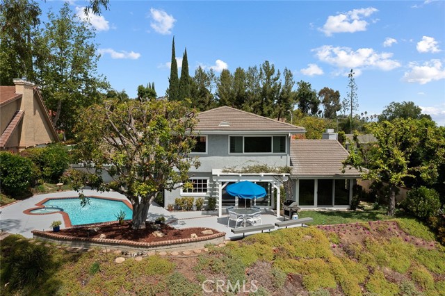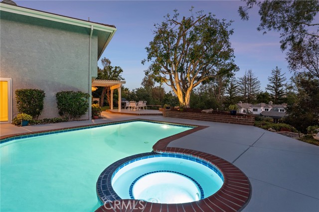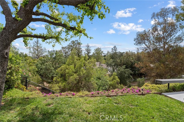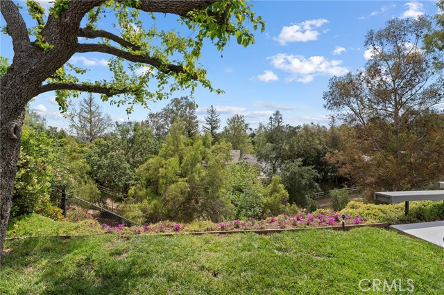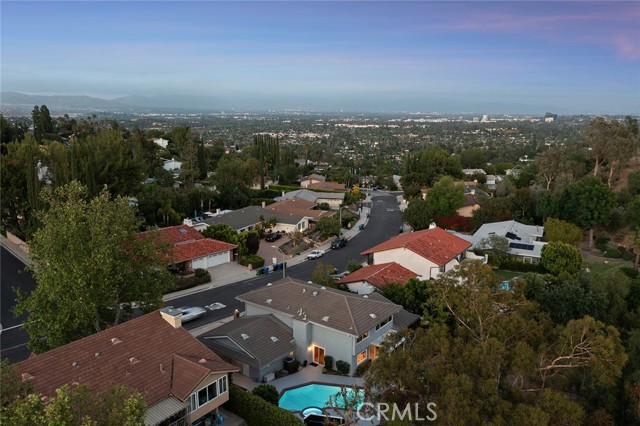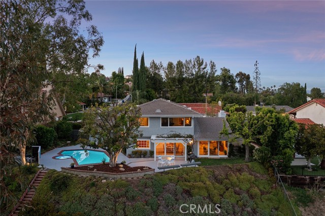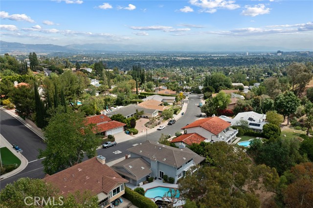 Meticulous Valley Circle Estates pool home boasting both Valley & mountain views while also overlooking the scenic vistas of Hidden Hills! On the market for the first time in over 35 years, the home is located West of Valley Circle and perched on a desirable double-sided view lot. The front yard has manicured rolling grass lawn with mature landscaping, wide driveway that leads to the 3-car attached garage with direct access, and covered front porch that leads to the double door entry. Formal entry foyer with coat closet leads directly to the spacious living room highlighted by floor-to-ceiling stone fireplace, soaring wood beamed pitched ceiling, picture windows that bask the space in natural light, & separate seating area with glass slider that opens to the yard with views beyond. The formal dining room features a dual-sided wet bar with serving counter and sink and a glass slider that opens to the covered patio. Upgraded kitchen has granite counters, real wood cabinetry, stainless appliances, 5-burner cooktop, double ovens, warming drawer, separate buffet counter with storage, pantry space, and glass slider that opens to the yard. A first floor guest bedroom/office has walk-in closet and access to full bathroom with tub & shower that also serves as convenient guest powder bath. Upstairs you will find the oversized primary suite boasting wall-to-wall picture windows that overlook incredible scenic mountain and nature views, sitting room, gorgeous wood beamed ceiling, two large walk-in closet/wardrobe areas, and expansive en-suite bathroom with dual vanities, separate makeup counter, bath tub, walk-in shower, and toilet room. Two additional secondary bedrooms are each well appointed with large closets, with one featuring city light views. A hall bath has dual sinks and bath tub/shower. A sizable laundry room has sink, built-in storage cabinetry, and direct access to the 3-car garage. The entertainer’s backyard is a true sanctuary set behind a backdrop of dazzling Hidden Hills tree-lined scenic vistas and features remodeled swimming pool & spa, covered trellis, large patio ideal for dining alfresco, two grass areas with mature trees, and a sprawling landscaped lower level that provides potential for further development. Adjacent to Westfield Mall/Village, Calabasas Commons, Warner Center with the new Rams Village in development, local parks/hiking trails, & zoned for award-winning El Camino & Hale charter schools.